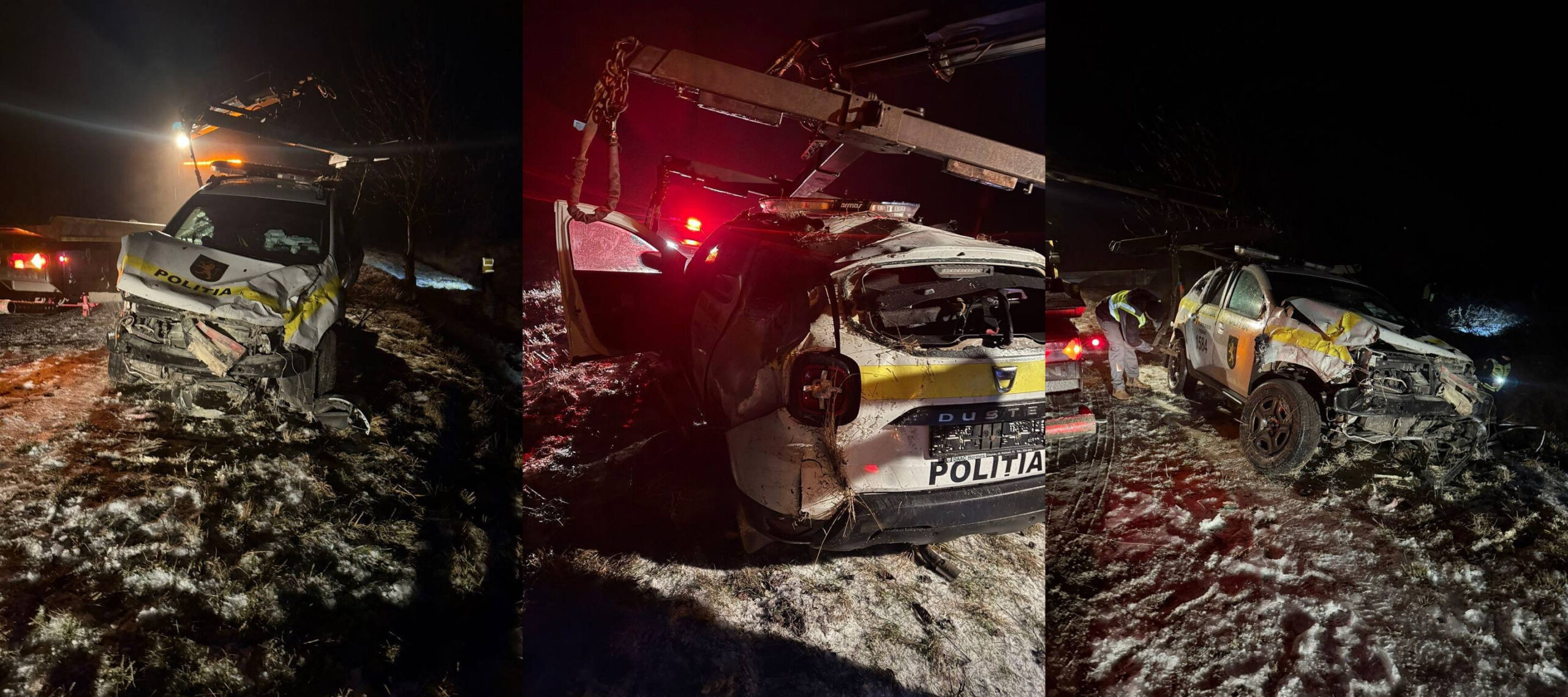Un accident misterios s-a întâmplat în noaptea zilei de 5 februarie, undeva în raionul Strășeni. O Dacia Duster a fost făcută zob în circumstanțe neclare. Singurele informații care însoțesc imaginile publicate pe un canal de Telegram sunt că un polițist ar fi fost internat în stare gravă la spital.