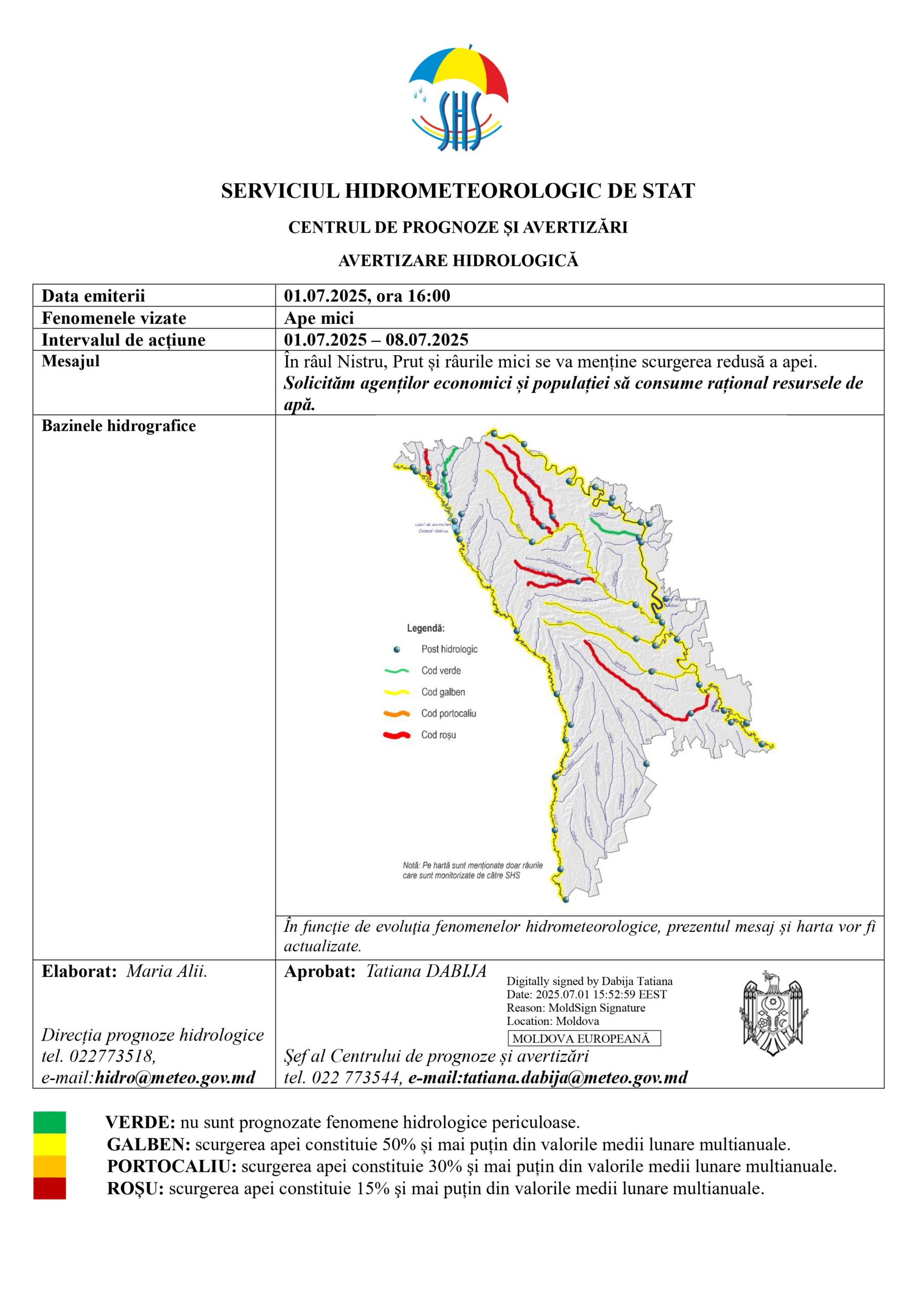 Iar mai devreme, din 1 iulie și până pe 8 iulie cel puțin, va fi activă o avertizare hidrologică Cod Galben, Portocaliu și Roșu!