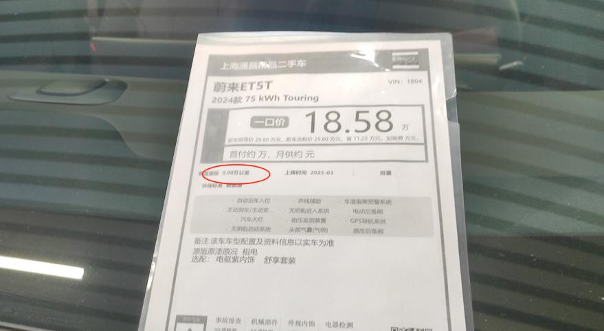 Un alt exemplu elocvent este al unui NIO ET5T din 2024, listat inițial la 298.000 de yuani (35.800 euro) cu taxe, vândut ulterior cu „zero parcurs” pentru 185.800 de yuani (22.400 euro). Totuși, garanția originală de 6 ani sau 150.000 km pentru vehicul și 10 ani/fără limită pentru baterie se reduce la 3 ani sau 120.000 km pentru mașină și 8 ani sau 120.000 km pentru baterie pentru al doilea proprietar, o pierdere de cel puțin 20% din beneficii.