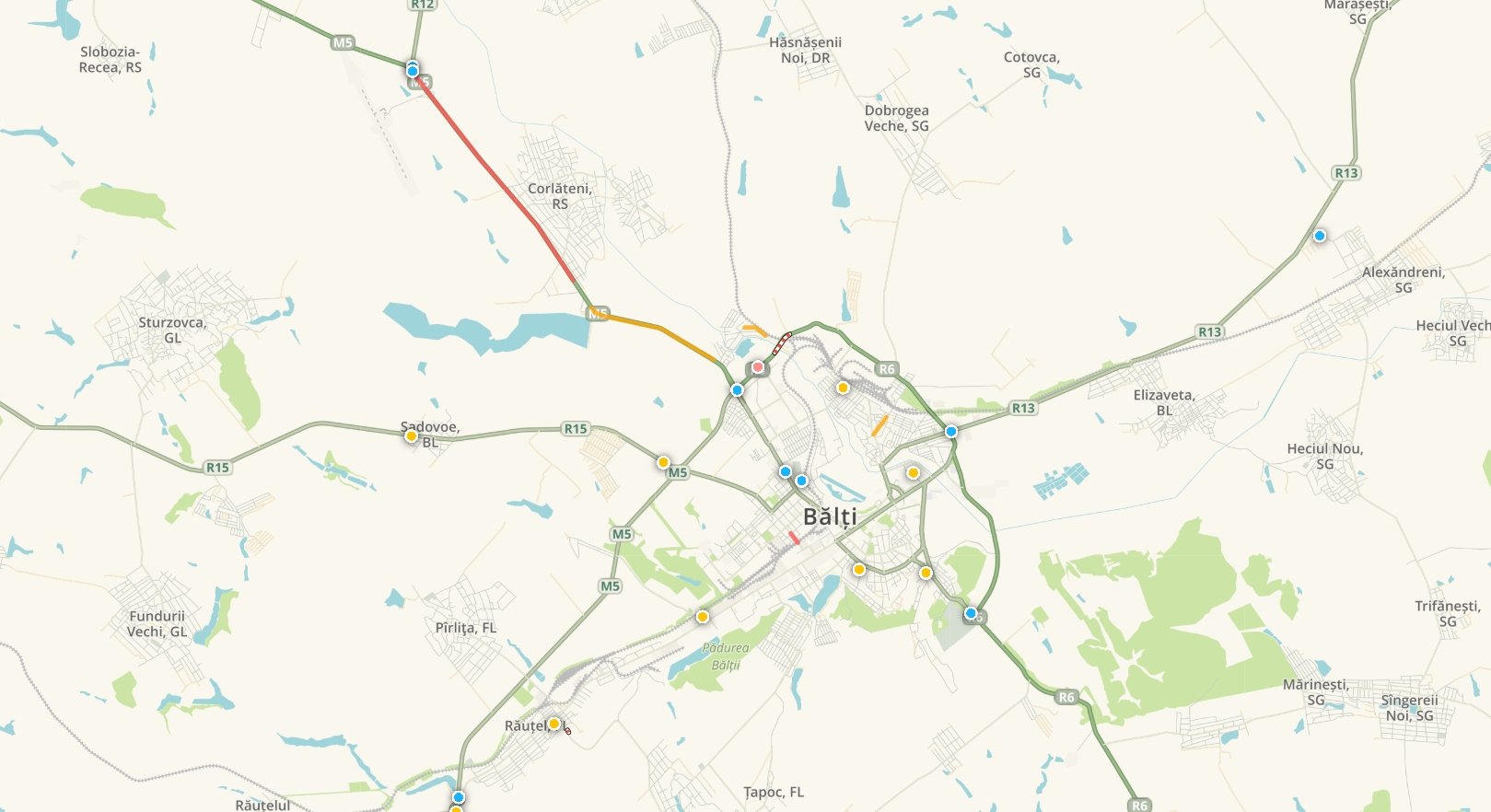 • R2 (Anenii Noi – Chișinău) – cel mai mare ambuteiaj la moment potrivit datelor Waze