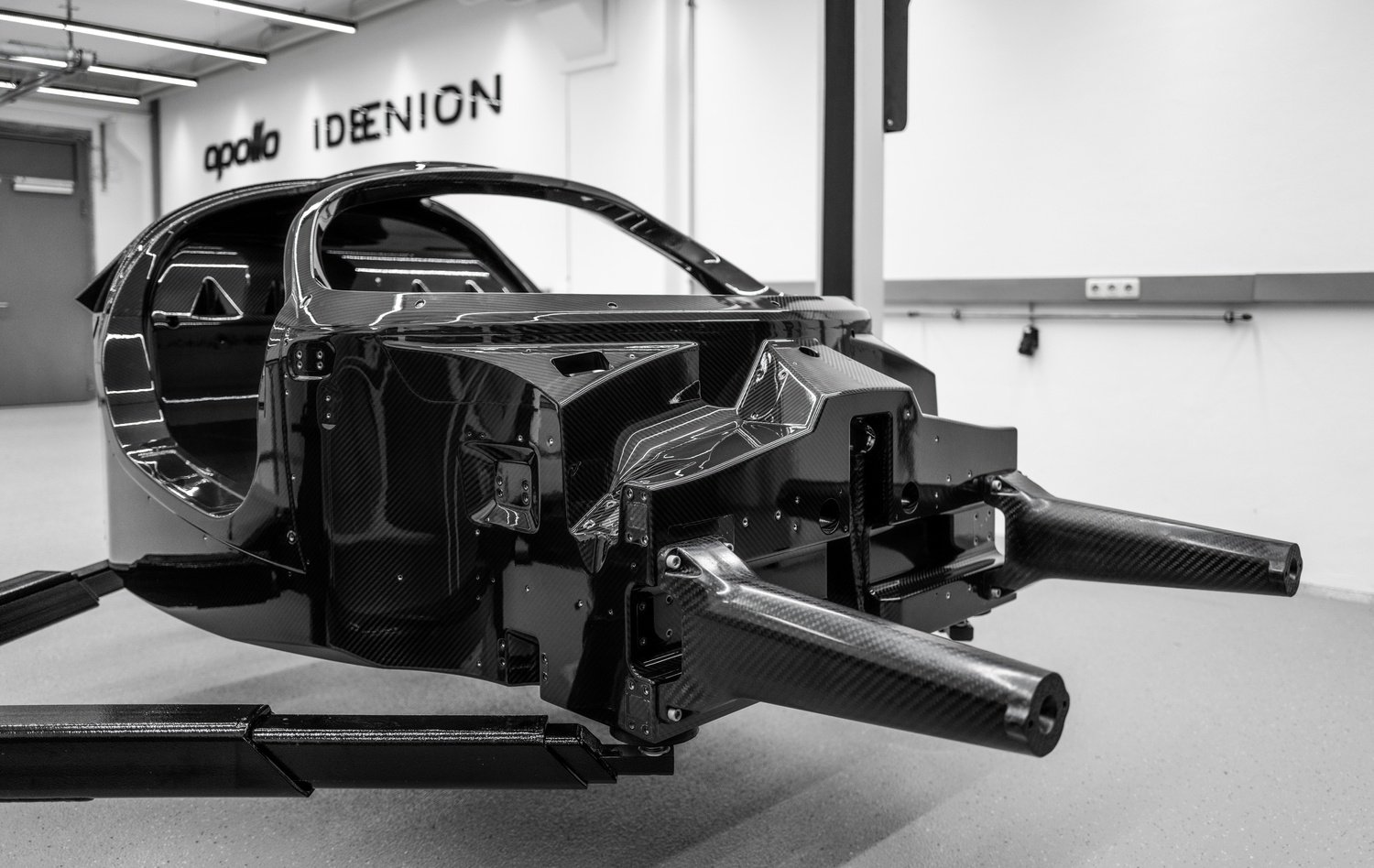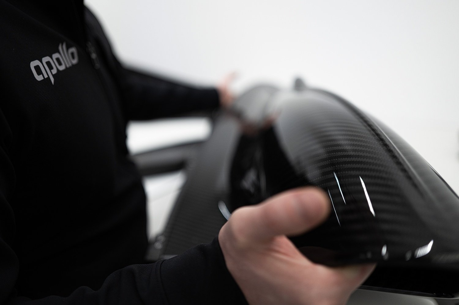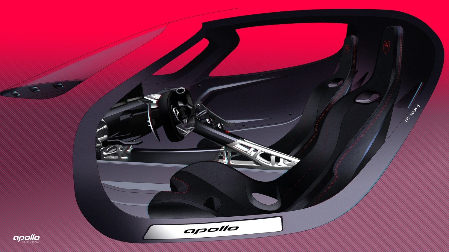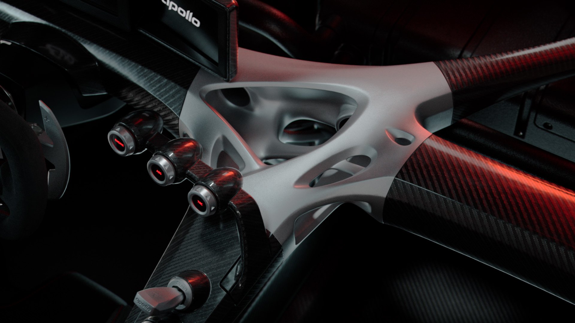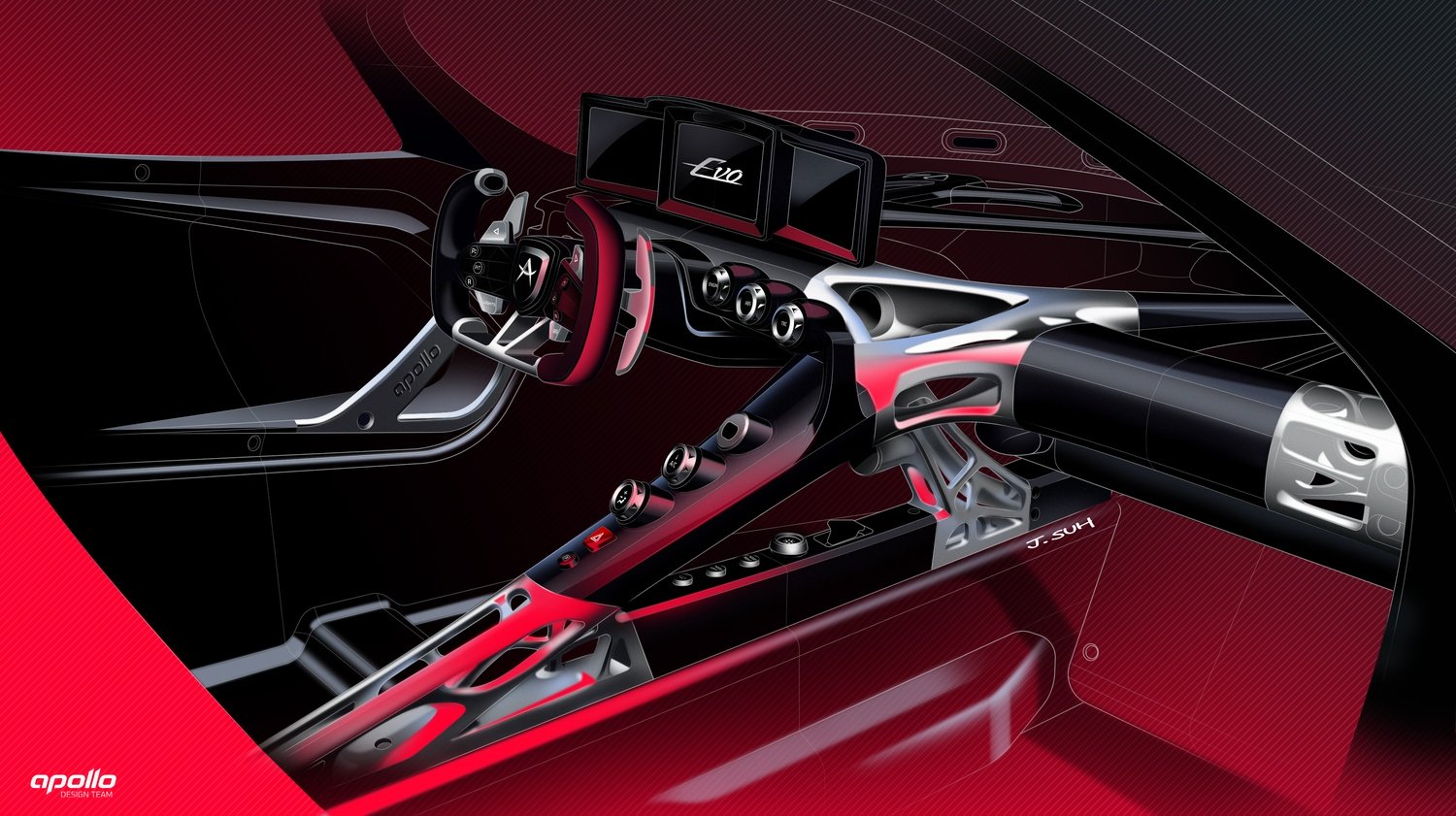 Interiorul lui Apollo EVO redefinește conceptul de cabină într-un hypercar de performanță. Apollo a eliminat orice element superficial, transformând habitaclul într-un sistem mecanic vizibil și portant, construit aproape integral din fibră de carbon și aluminiu. Toate structurile de rigiditate rămân expuse, celebrând onestitatea mecanică și autenticitatea inginerească.