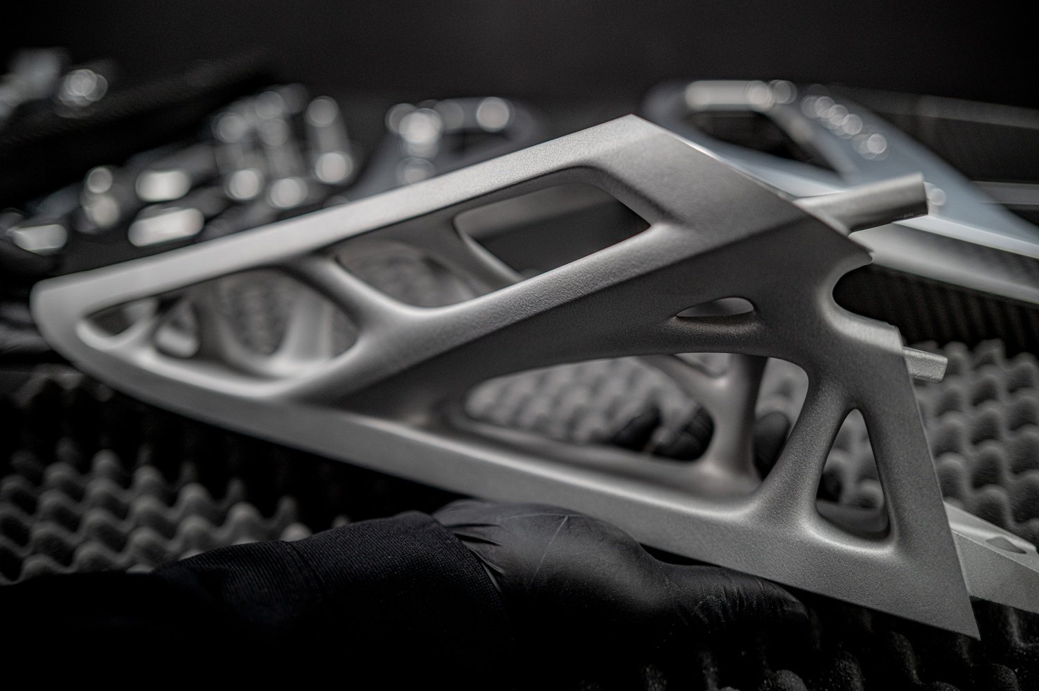 Structurile din aluminiu optimizate topologic („bionic”) elimină fiecare gram inutil, fiind ideale pentru tehnici avansate de fabricație precum imprimarea 3D, și absorb/distribuie forțele suportate de monococ, crescând rigiditatea torsională și contribuind direct la siguranță, precizie și performanță.