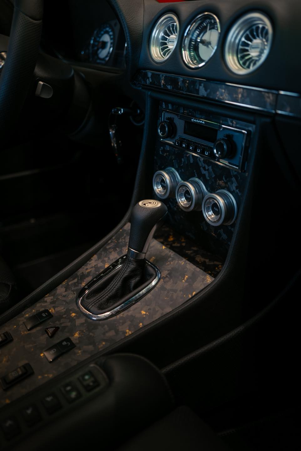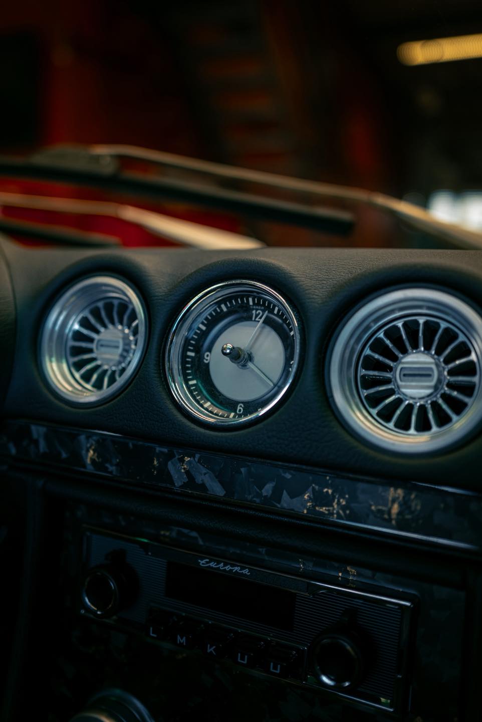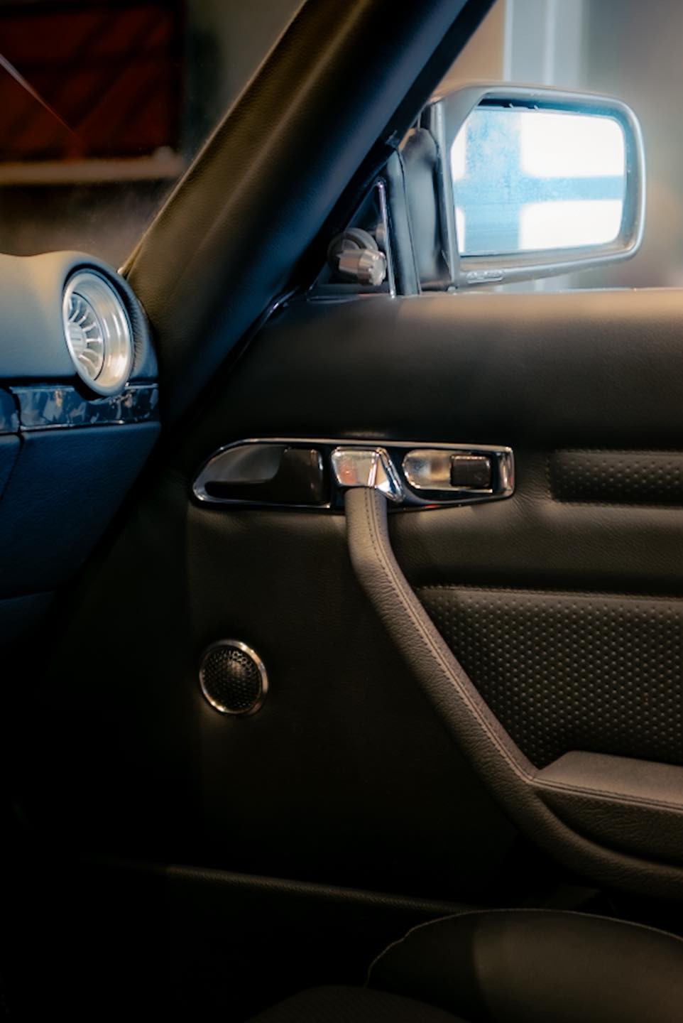 Scaunele Recaro ERGOMED, tapițate în piele originală Mercedes cu perforații, asigură confortul, completate de un sistem de climatizare Restomod Air controlat inclusiv printr-o aplicație mobilă și un sistem audio High-End de la Retroclassics cu STEG-DSP, subwoofer și boxe.