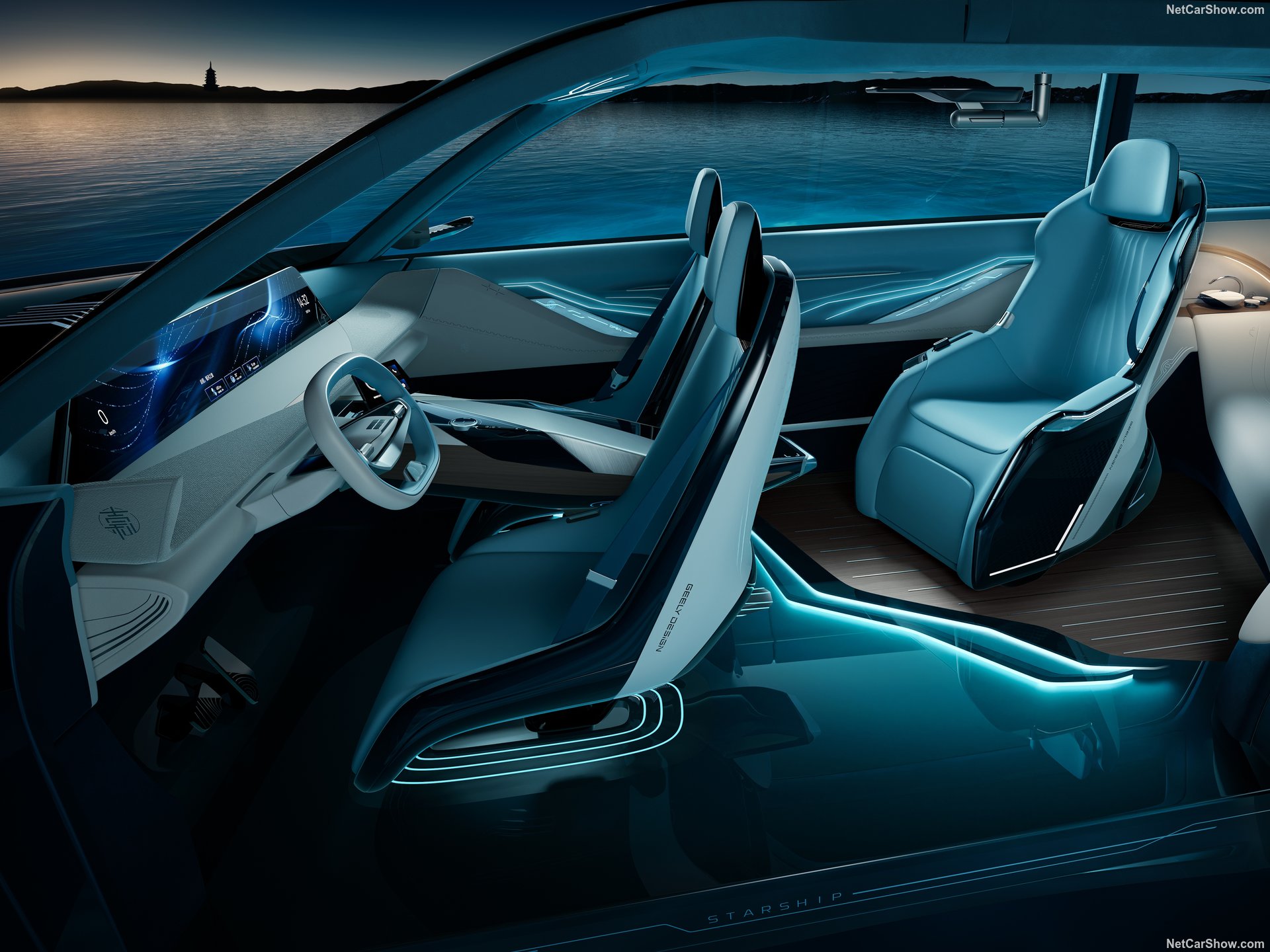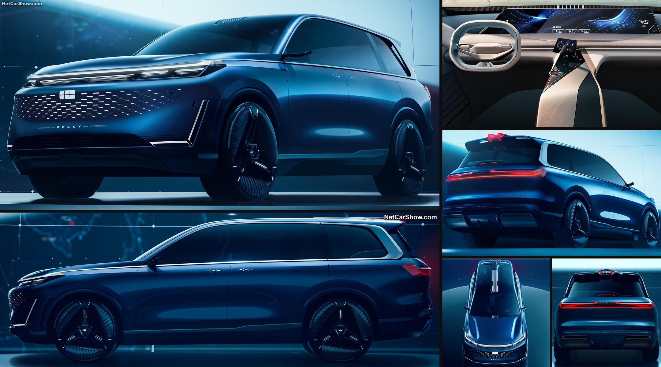 Conceptul Geely Galaxy Starship, dezvăluit în aprilie 2024 la Beijing Auto Show, a atras atenția prin designul său inovator și tehnologiile avangardiste. Cu o lungime de peste 5 metri, prototipul a impresionat prin portiere care combină elemente de tip „suicide doors” și „gull-wing”, deși acestea nu vor ajunge în versiunea de producție.