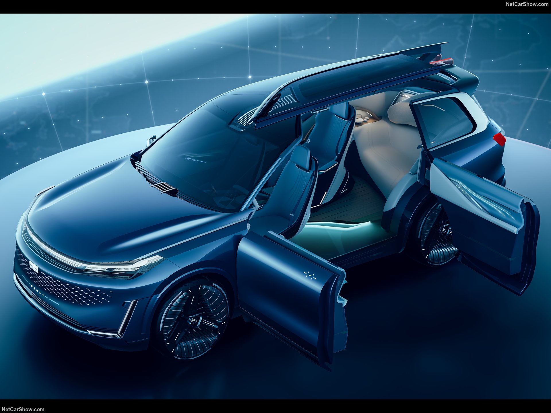 Interiorul său sci-fi includea un scaun care se deplasa în afara vehiculului pentru „transport pe ultimul km”, proiecții holografice și un ecosistem AI bazat pe un cip Qualcomm Snapdragon 8295. Conceptul a fost construit pe platforma GEA (Geely Electric Architecture), derivată din SEA. Sub capotă se declarase prezența sistemul hibrid Thor, care promitea o autonomie combinată de peste 2000 km și un consum de sub 3.0 l/100 km, datorită unei eficiențe termice de 46%.