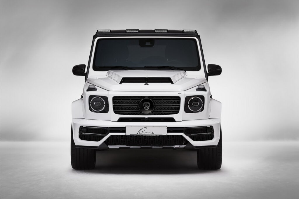 Un panou frontal pe acoperiş cu patru faruri suplimentare, noi lumini de zi integrate în bara de protecţie, un ataşament pe capotă, un cadru pentru grila radiatorului, noile terminaţii ale eşapamentului (şase la număr), capacul pentru roata de rezervă la fel cu un nou design şi corpurile oglinzilor retrovizoare din fibră de carbon printre altele, completează programul extrovertit de tuning exterior.