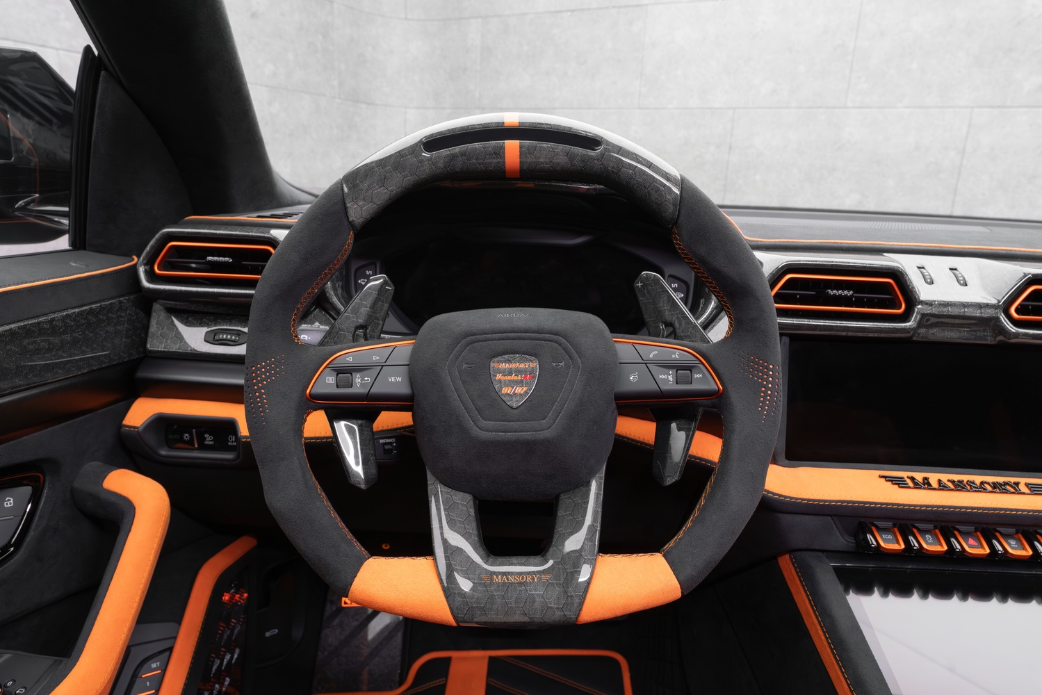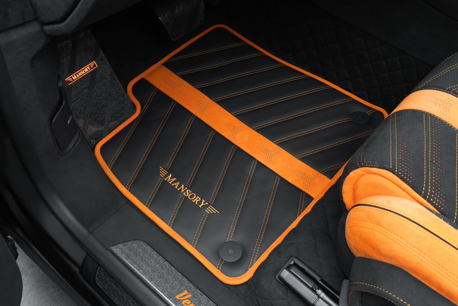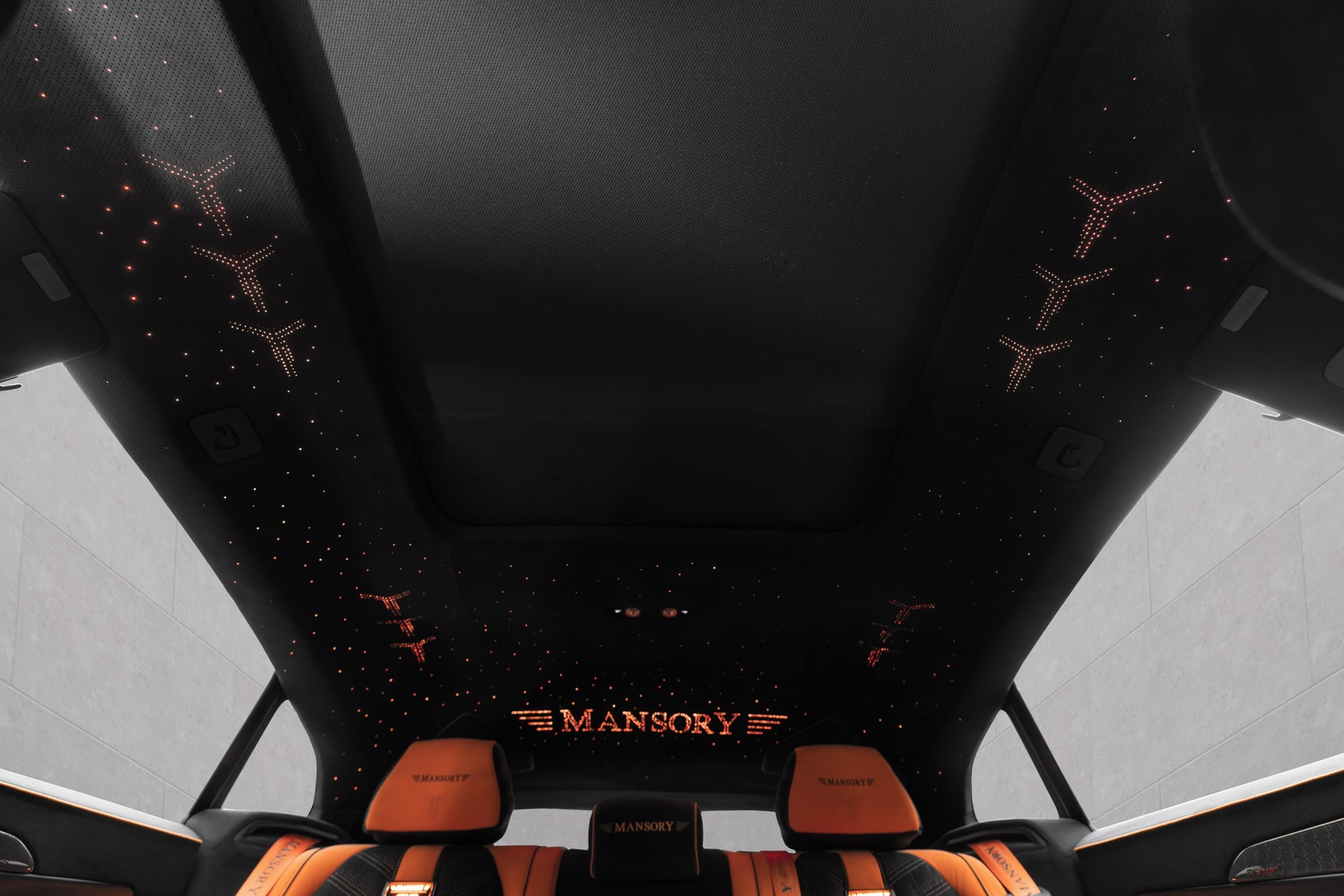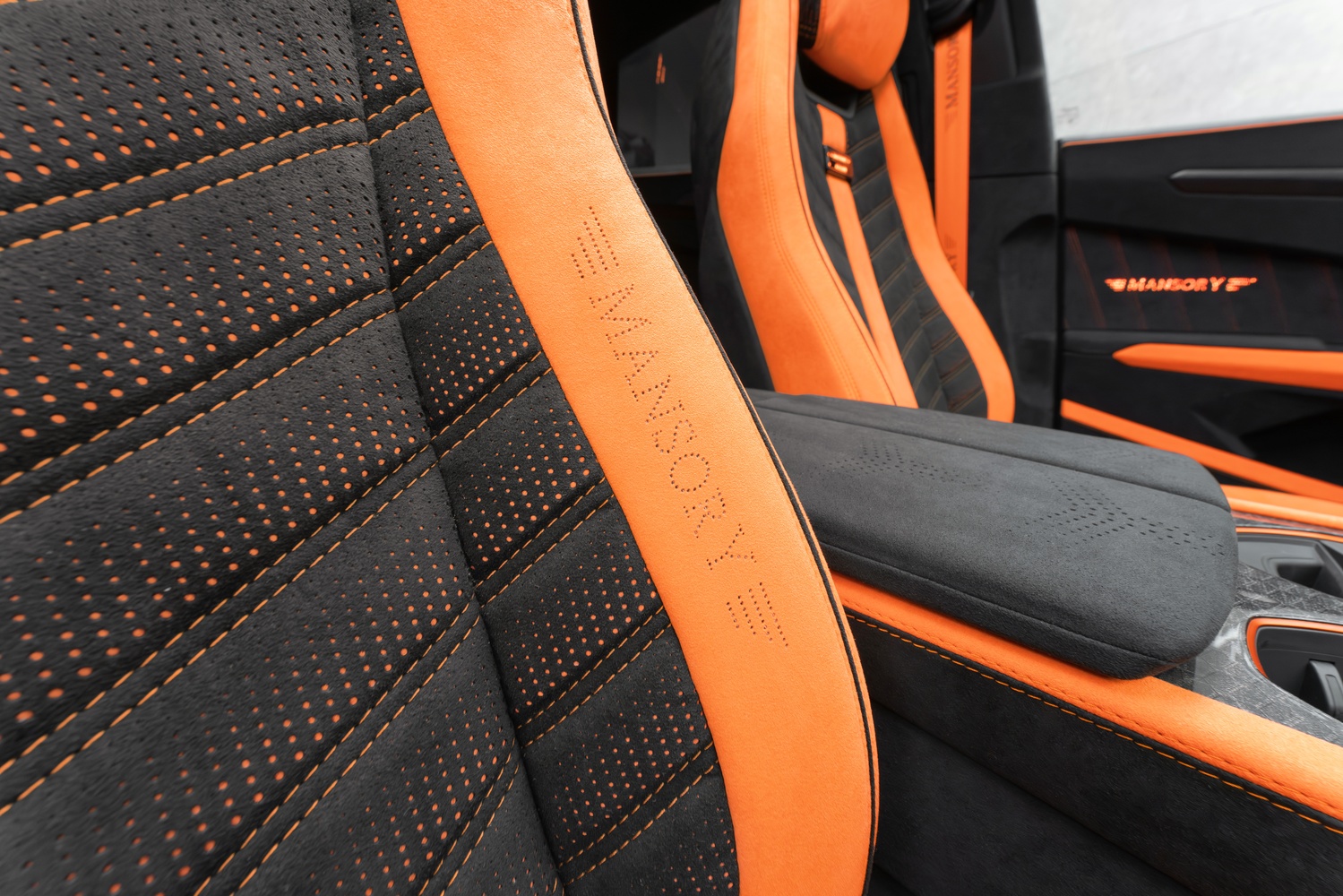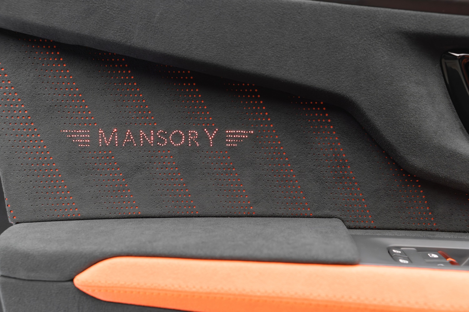- Detalii suplimentare: centuri de siguranță cu logo Mansory, pedale sportive din aluminiu, covorașe din piele, iluminare ambientală specială în plafon, volan remodelat cu padele și indicator de schimbare a treptelor, etc.