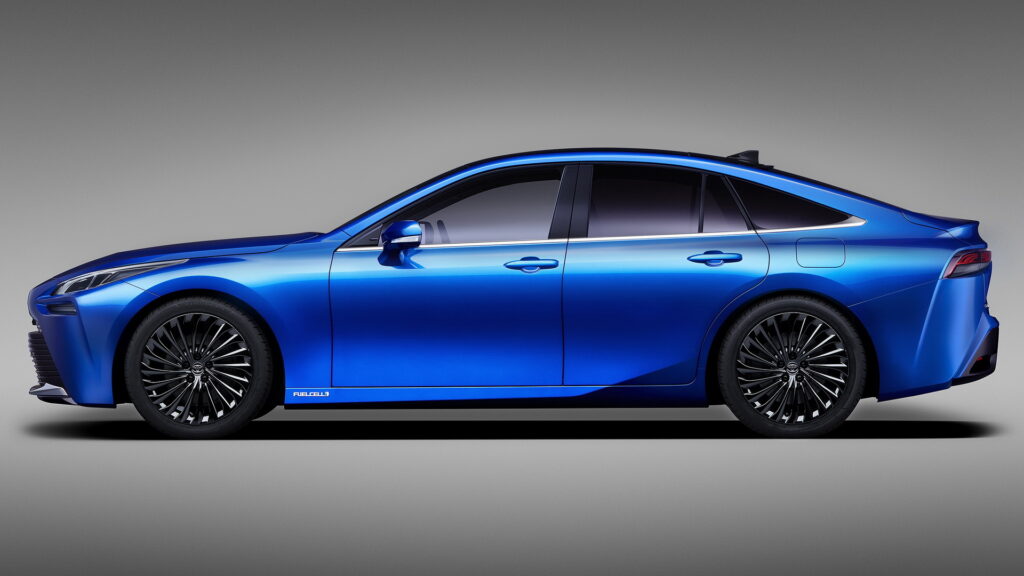 Drept urmare noul Mirai a spus adio platformei lui Prius şi a urcat pe baza arhitecturii TNGA-N cu tracţiune spate, aceeaşi care este utilizată pe sedanul Toyota Crown pentru piața japoneză. Proporțiile acum sunt decente, capota este mai lungă, iar cabina este împinsă la maxim spre spate. Chiar şi dimensiunea jantelor a crescut până la mărimea generoasă de 20 de inci.