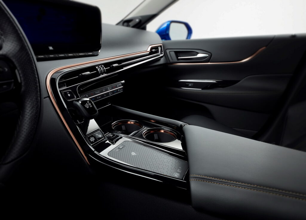 Consola centrală conţine doar un levier compact al cutiei de viteze, un panou de control al sistemului de climatizare, două suporturi pentru pahare şi o suprafaţă generoasă pentru încărcarea wireless a telefonului mobil.
