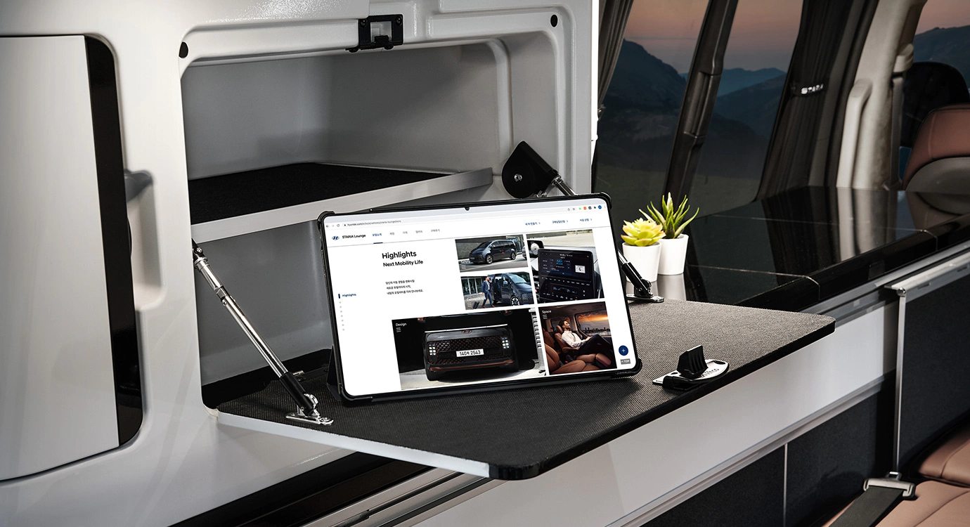 Hyundai STARIA Lounge Camper este oferit în două versiuni. Camper 11 are o cabină standard pentru piața coreeană, cu patru rânduri de scaune pentru un număr total de 11 locuri. Pe toată suprafaţa scaunelor rabatate se poate instala o saltea, iar portbagajul poate fi dotat cu o plasă anti ţânţari.
