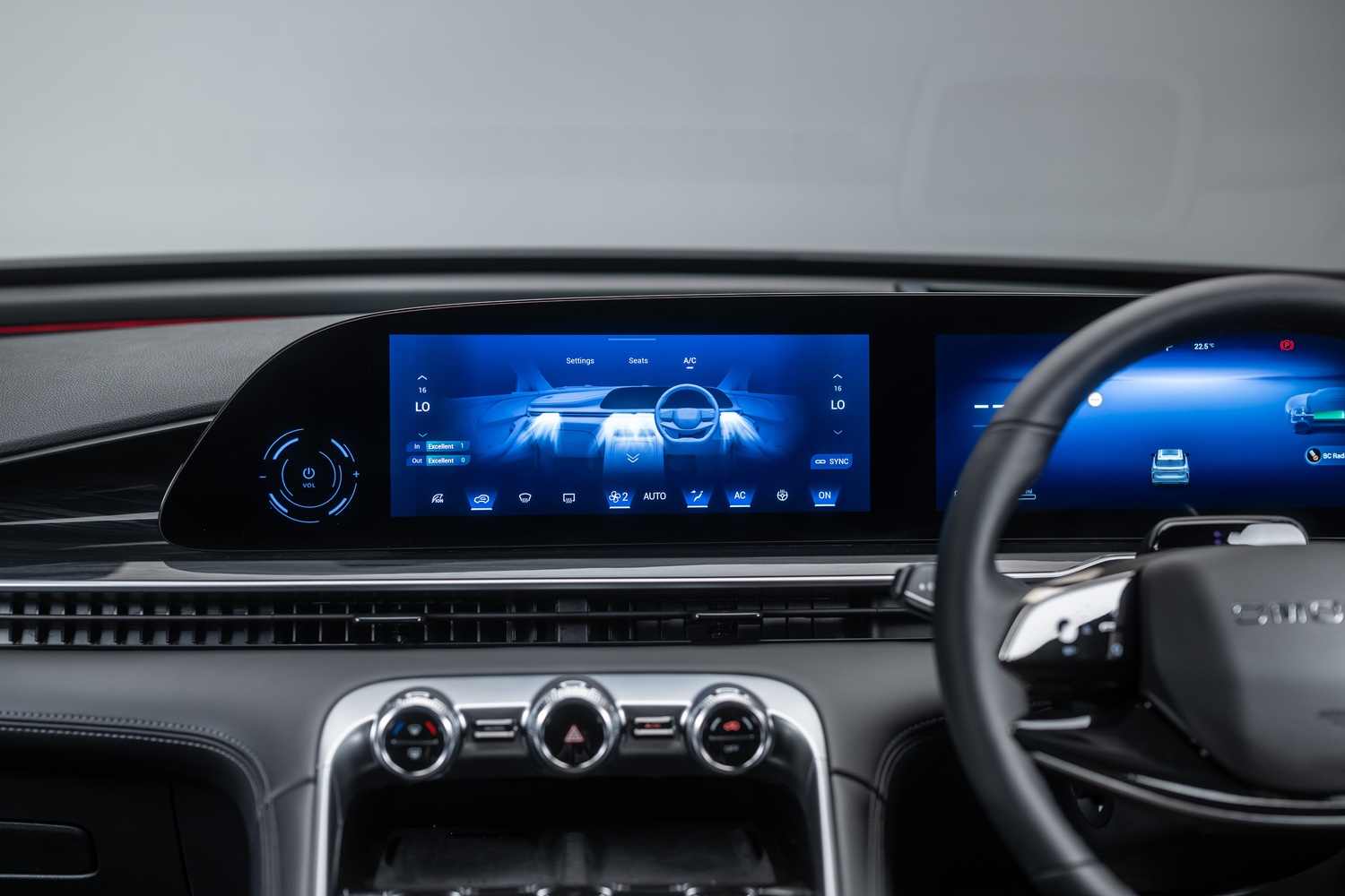 - Ecran dublu curbat de 24.6 inchi (2 x 12.3 inchi), integrând funcțiile șoferului și infotainmentul.