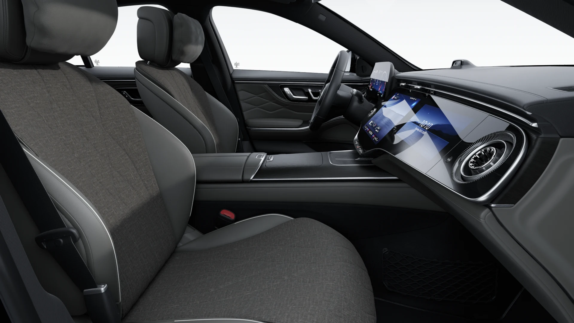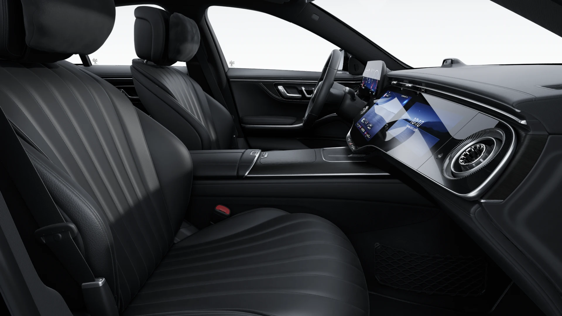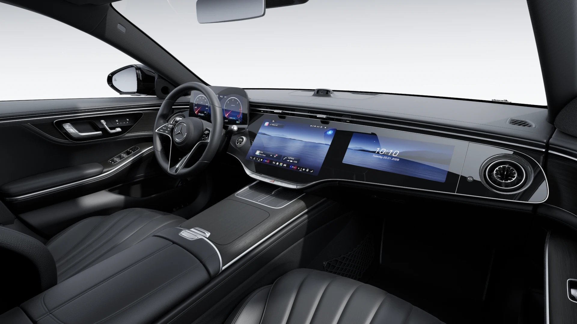 Până acum, chiar și modelele mai vechi care aveau tapițerie din velur (celebrele interioare de pe S-Class W126 din anii ’80) foloseau totuși piele naturală pe volan și pe schimbătorul de viteze. Modelul W223 facelift este primul flagship din istoria mărcii de pe care pielea naturală poate fi scoasă de pe absolut toate suprafețele, inclusiv de pe volan și panourile ușilor.