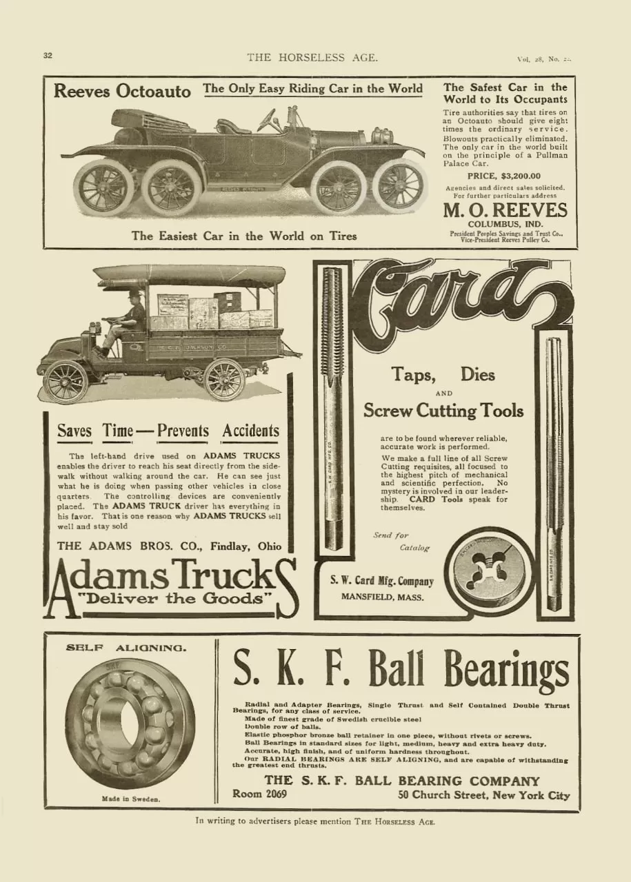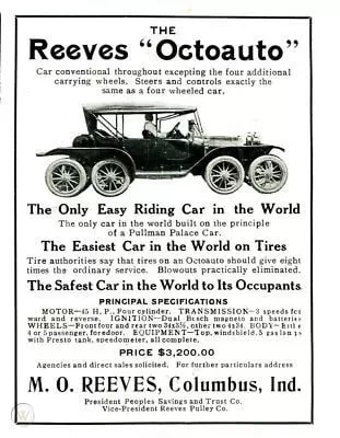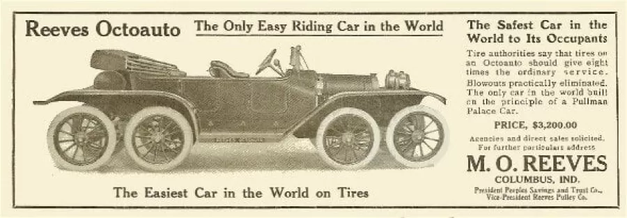 La începutul secolului XX, drumurile din America erau, în cea mai mare parte, simple bătătorite pe pământ, pline de gropi, denivelări și urme adânci lăsate de roțile căruțelor. Pneurile din cauciuc erau încă fragile, iar suspensiile cu arcuri lamelare nu puteau absorbi eficient șocurile. În acest context, Milton O. Reeves, un inventator prolific din Indiana, a venit cu o soluție radicală: un automobil cu opt roți!