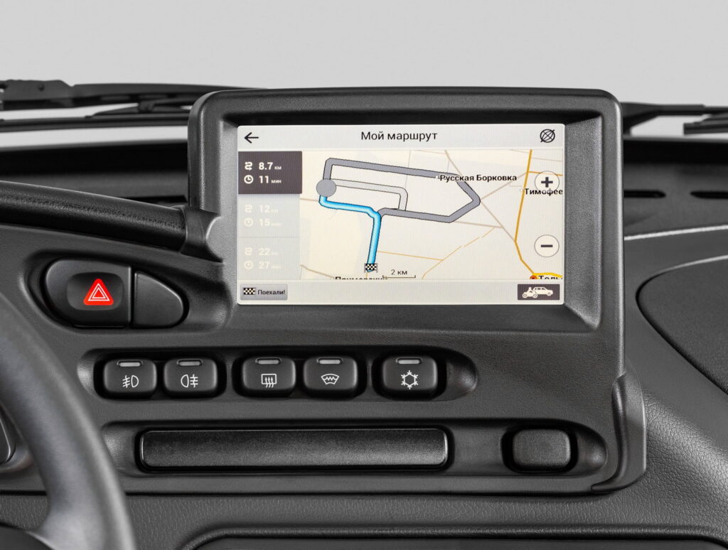 Noul sistem multimedia conţine două componente principale, un ecran de 7 inci poziţionat deasupra bordului şi un panou cu o serie de comenzi pentru control suplimentar, care mai conţine un microfon şi un cititor de carduri SD. Acesta din urmă este instalat în locul panoului pentru controlul sistemului audio, iar ecranul de sus, potrivit dezvoltatorilor, corespunde standardelor tehnice şi nu afectează vizibilitatea.