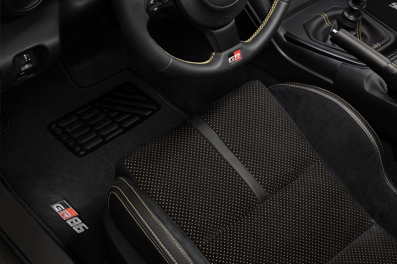 Cu o greutate de doar 1275 kg pentru varianta manuală și 1293 kg pentru cea automată, GR86 se numără printre cele mai ușoare mașini sport din portofoliul Toyota. Utilizarea aluminiului pentru capotă, aripi față și plafon, alături de adezivi structurali și scaune mai ușoare cu peste 2.7 kg, contribuie la această performanță.