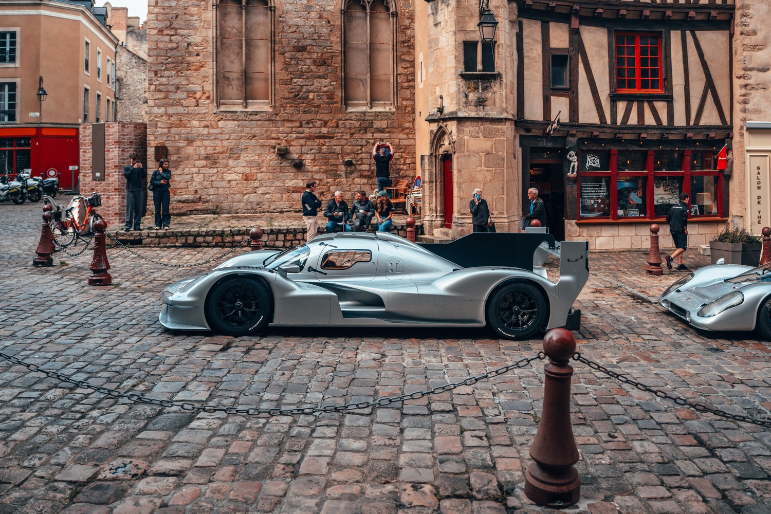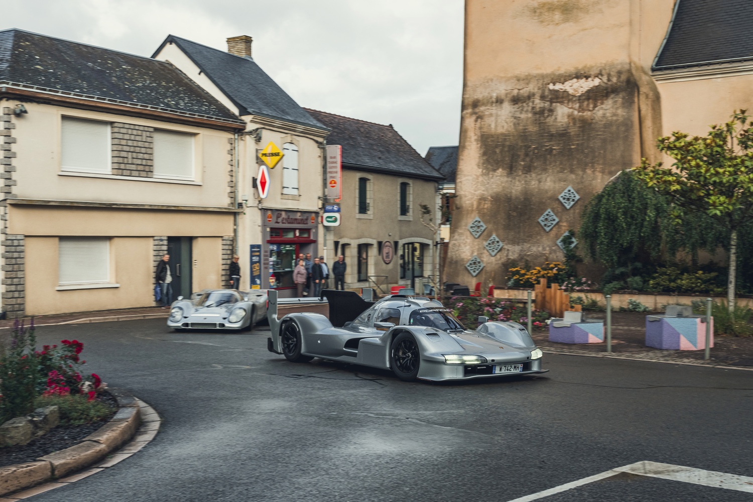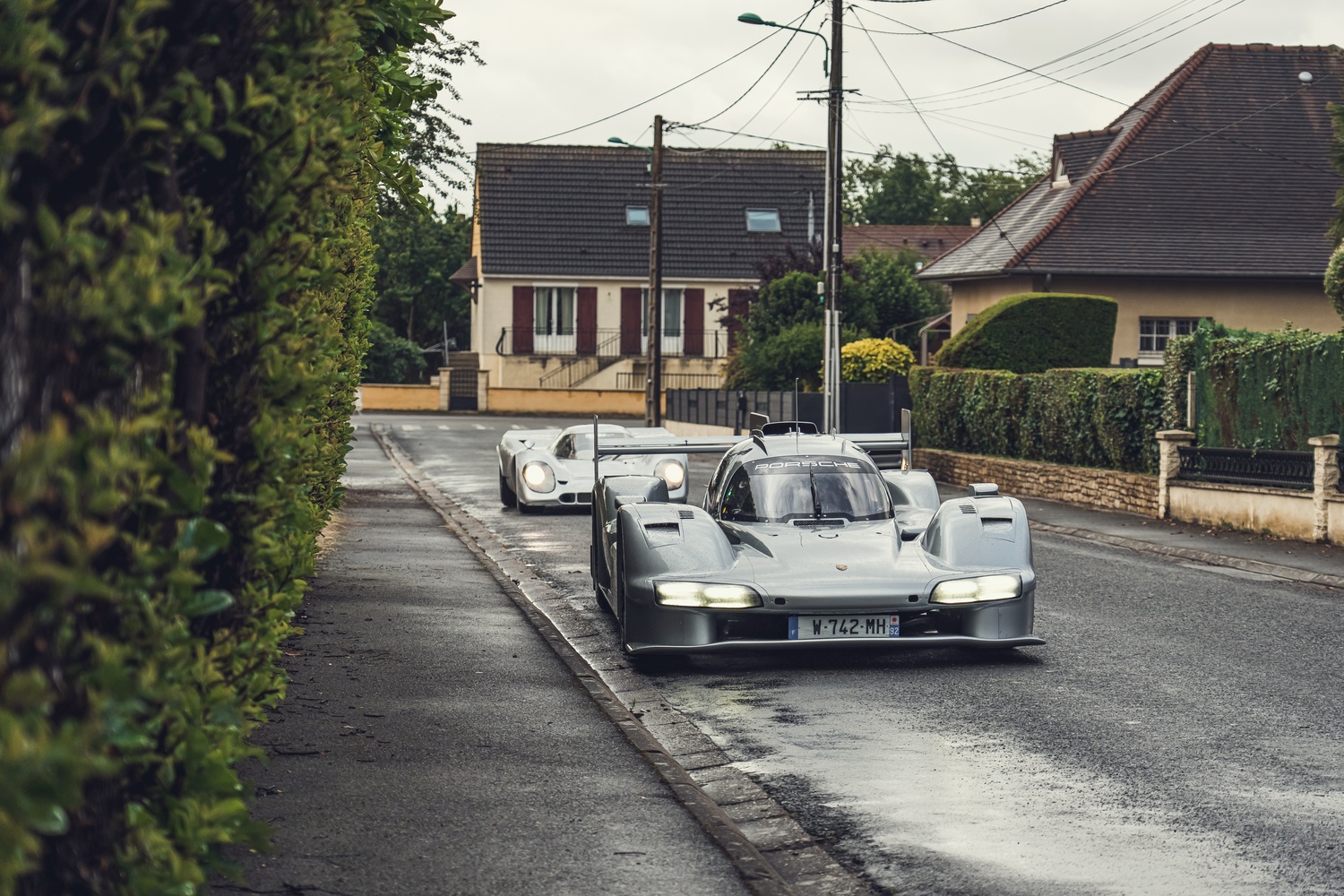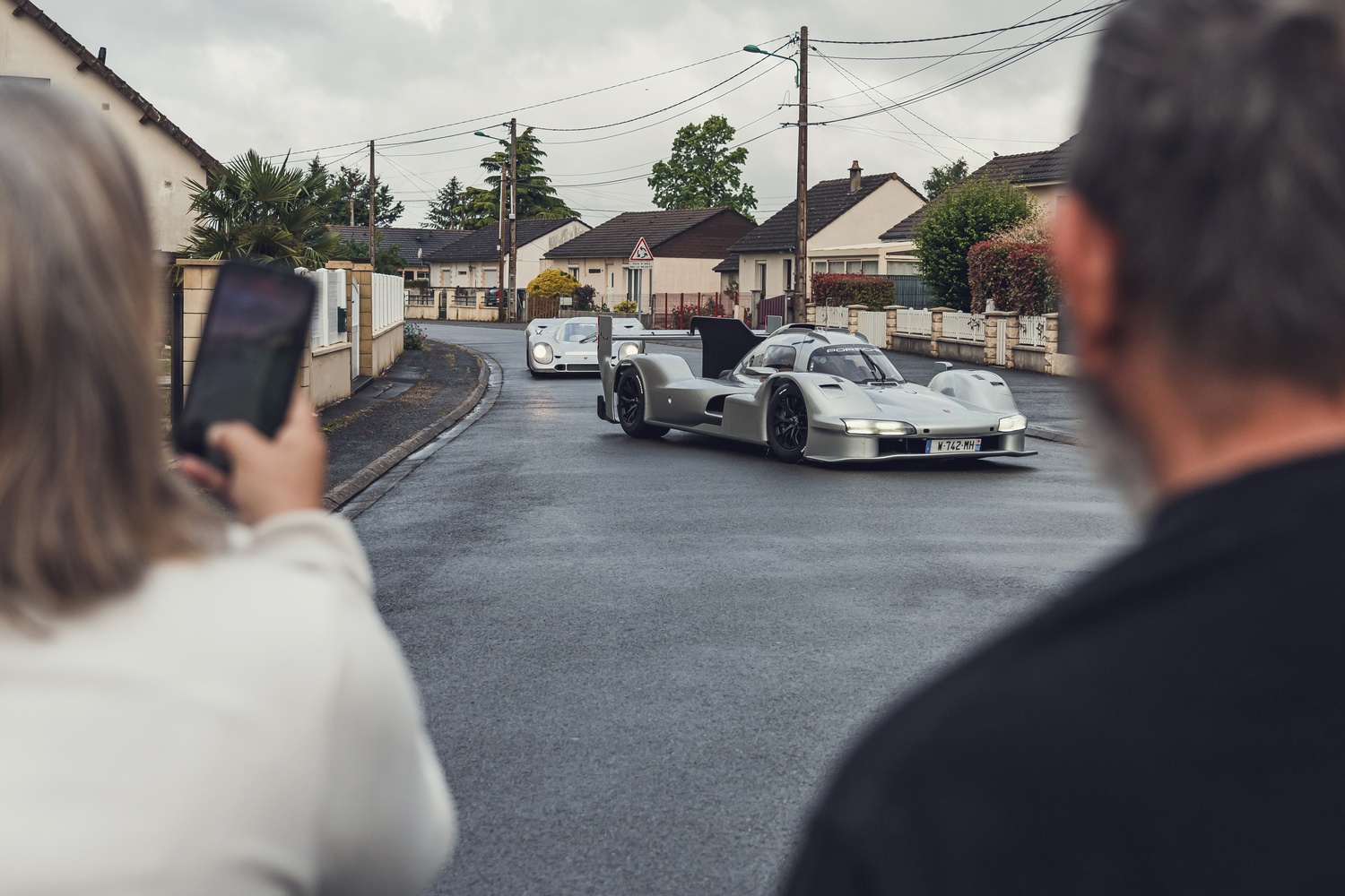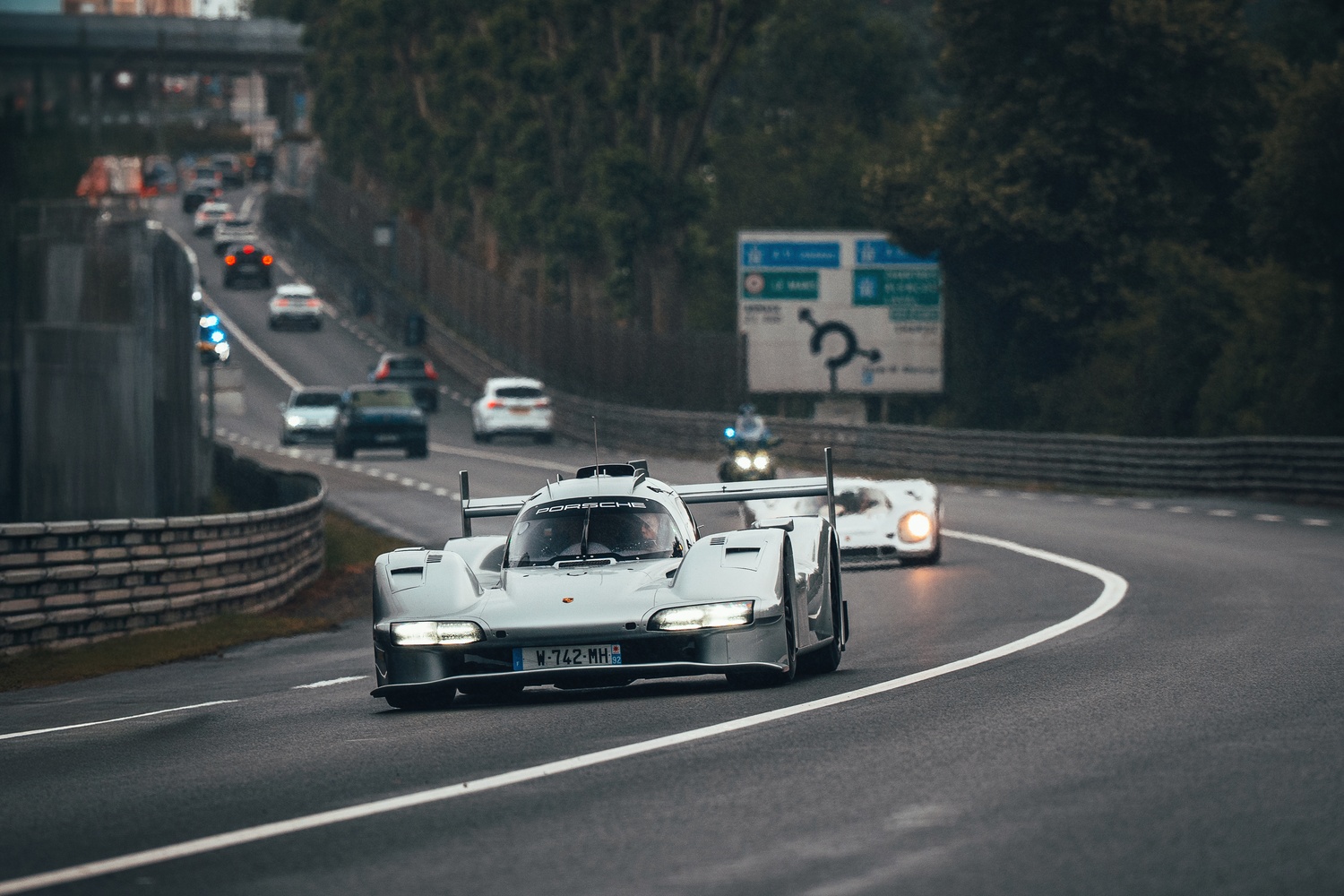 Mașina a fost condusă astăzi pe străzile din apropierea circuitului de la Sarthe de către triplul câștigător de la Le Mans, Timo Bernhard, alături de emblematicul 917.