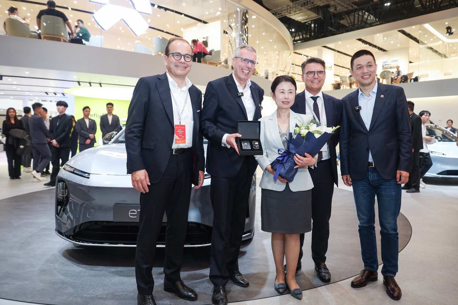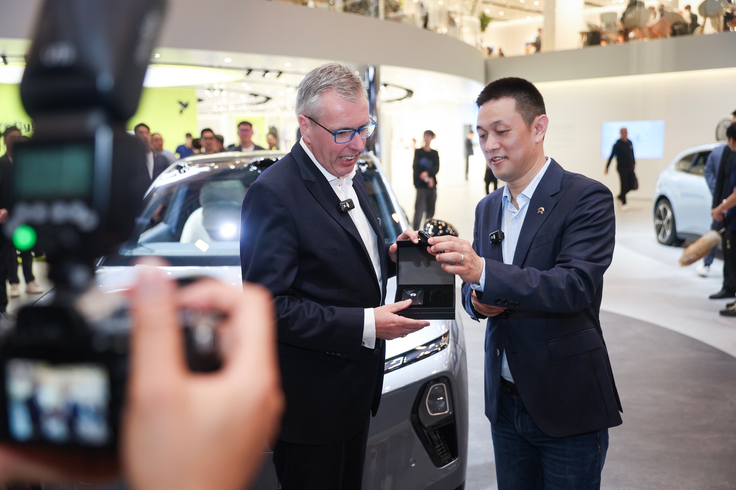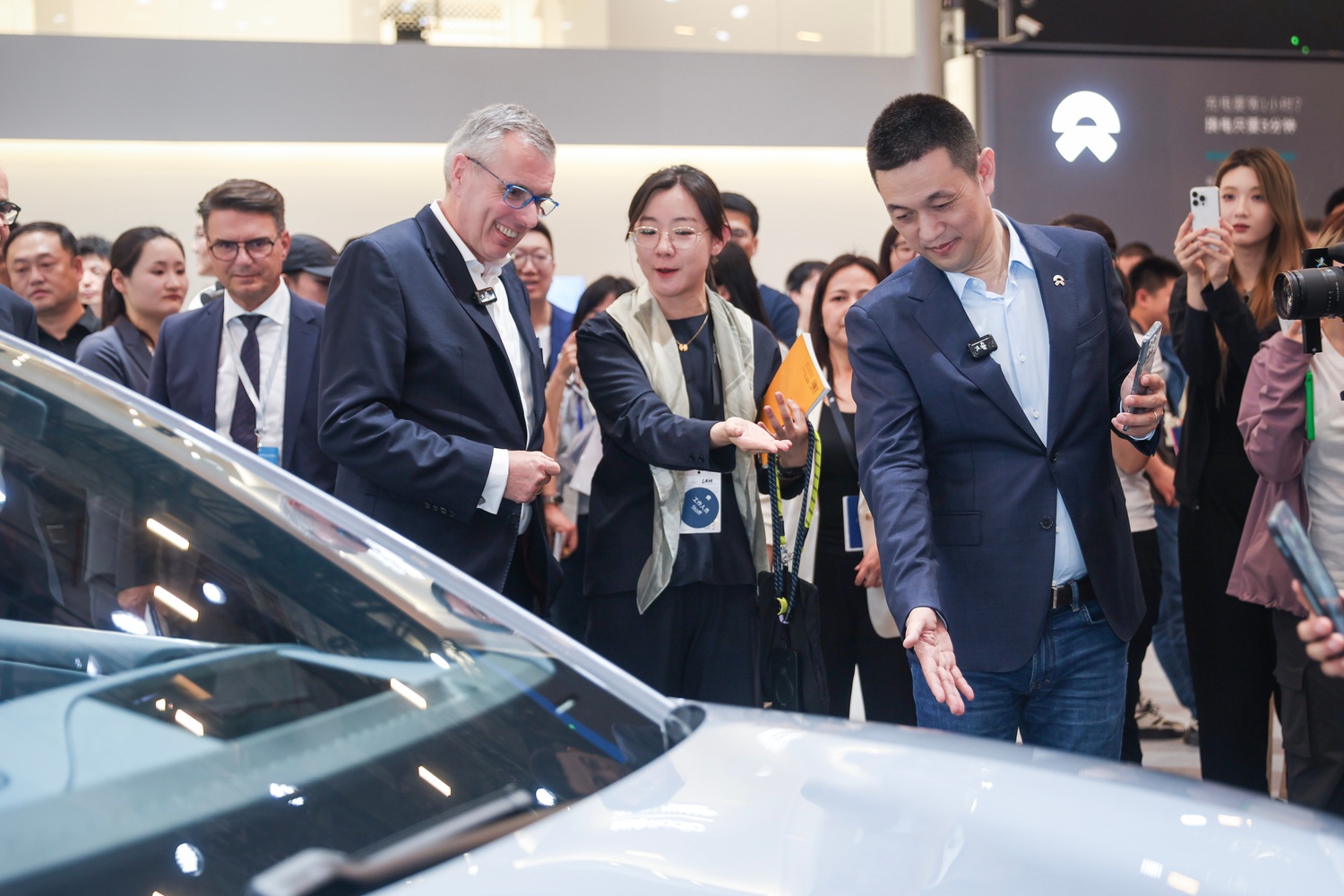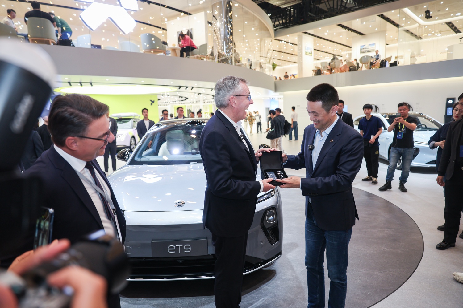 Aglomerație mare și la standul NIO de la Salonul Auto de la Shanghai, însă pe lângă expoziția de produse au avut loc și câteva evenimente notabile. Holger Klein, CEO-ul gigantului german de tehnologie auto ZF Group, a devenit primul proprietar străin de ET9. Cheia mașinii i-a fost înmânată chiar de William Li, fondator, președinte și CEO al NIO.