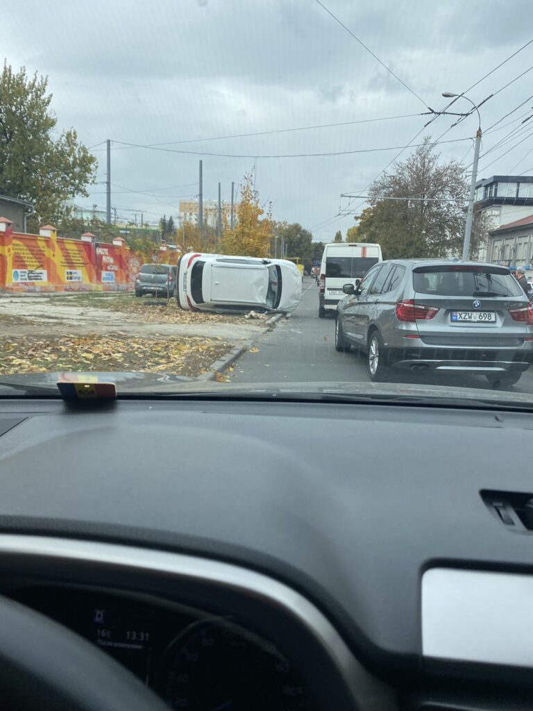 (foto/video) Ziua răsturnărilor şi urcărilor pe capotă. Trei accidente care s-au întâmplat în capitală
