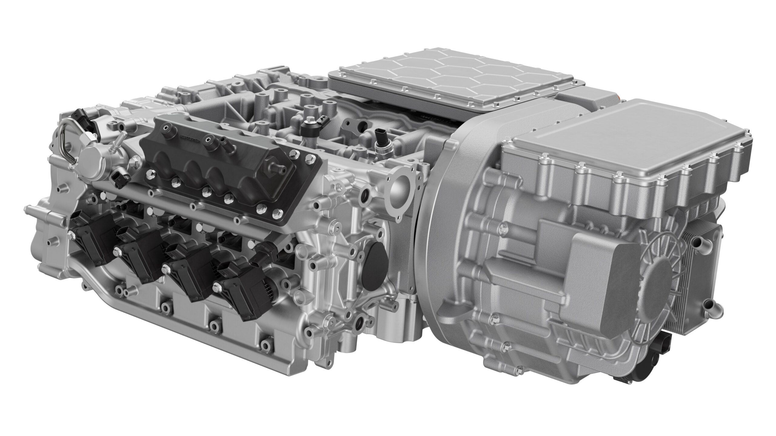 • Motorul P1 (integrat la capătul arborelui cotit al motorului termic) acționează în principal ca generator. Puterea de generare este de 70 kW pentru varianta aspirată natural și 110 kW pentru varianta turbo.