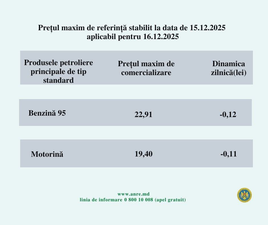 În particular, prețul unui litru de benzină 95 scade cu 12 bani, ultima dată o reducere cu peste 10 bani fiind văzută la mijloc de octombrie. Diminuarea cu cei 12 bani aduce prețul, din nou, la sub 23 de lei.