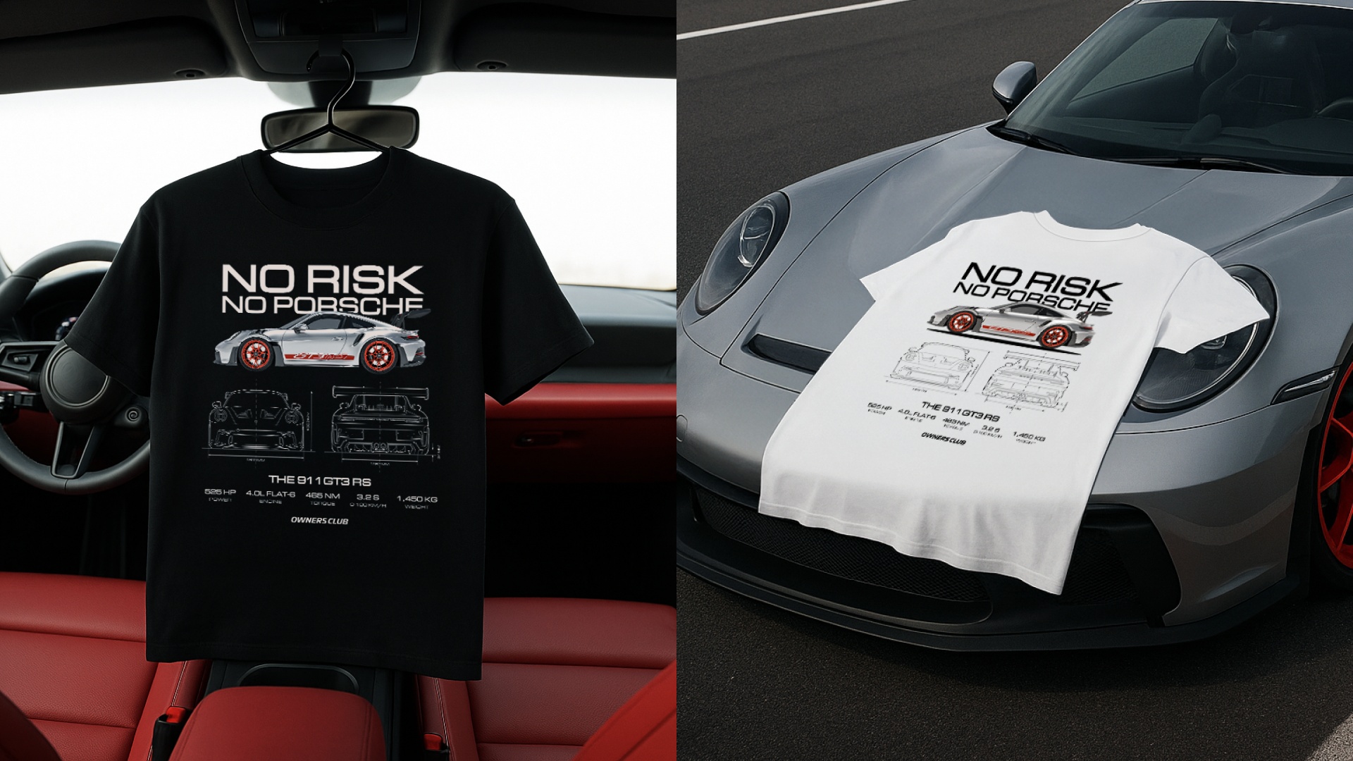 No Risk, No Porsche vorbește despre curaj, ambiție și perseverență — valori pe care orice pasionat auto le înțelege. Creat pentru cei care trăiesc cu accelerația în podea, visători, pasionați de mașini și iubitorii Porsche.