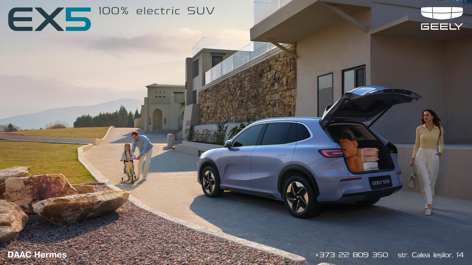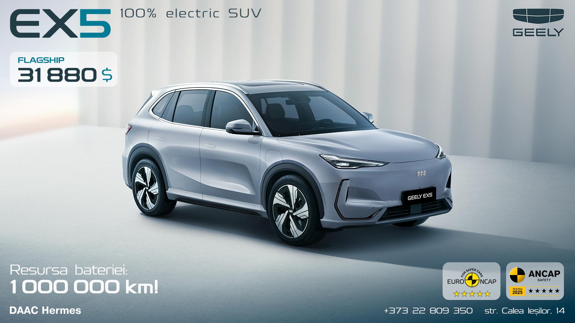 (P) GEELY EX5 – crossoverul electric cu o resursă a bateriei de 1 milion de km este deja în Moldova