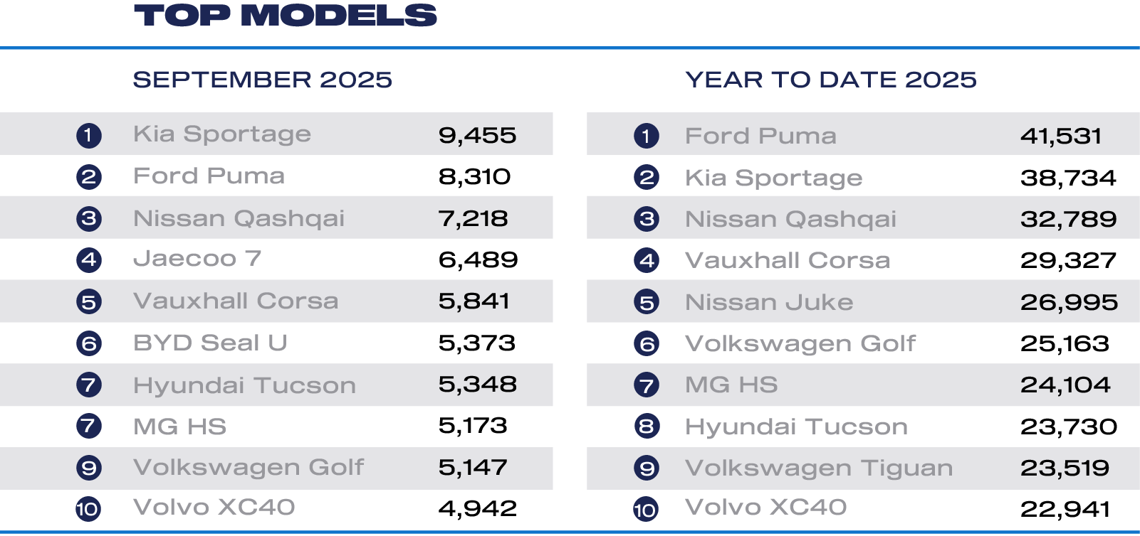 Seal U DM-i, echipat cu tehnologia inovatoare hibridă dual-mod a BYD, continuă să conducă clasamentul vânzărilor companiei, cu 7524 de unități vândute între iulie și septembrie, dintre care 5373 doar în septembrie. Acest SUV a devenit cel mai bine vândut vehicul PHEV în Marea Britanie pe întreg anul 2025, atrăgând clienți prin eficiența sa și designul versatil.