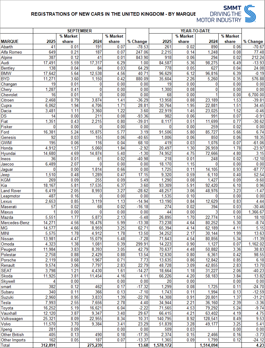 BYD, cel mai mare producător mondial de vehicule cu energie nouă, a spart un nou record de vânzări pe piața britanică. Marca a vândut 11.271 de mașini în luna septembrie, reprezentând o creștere substanțială de 880% comparativ cu aceeași lună din anul precedent, depășind astfel branduri tradiționale precum Renault și SEAT.