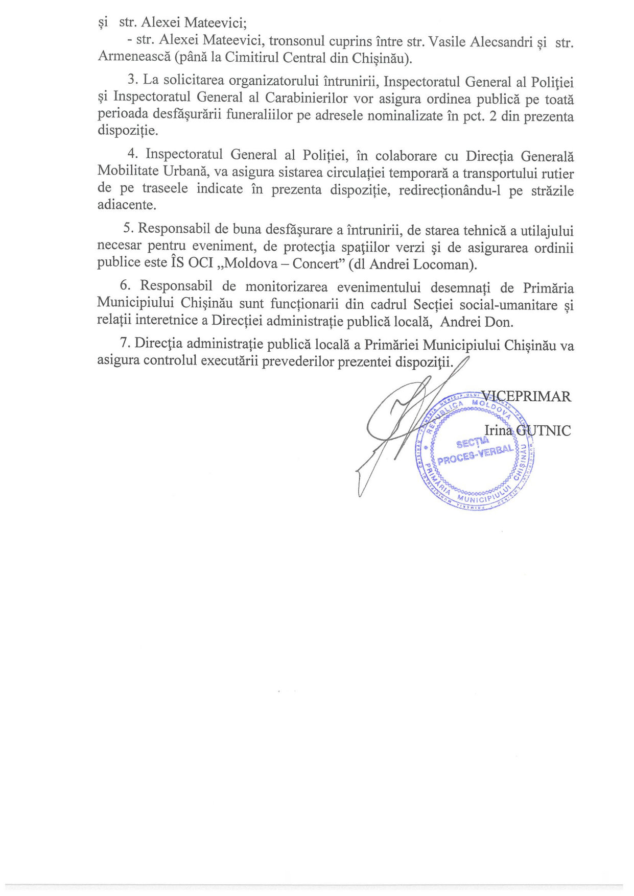 Polițiștii vor asigura fluidizarea fluxului de transport cu redirecționarea pe străzile adiacente. În acest context, conducătorii auto sunt îndemnați să se conformeze cerințelor agenților de patrulare și să manifeste răbdare și disciplină în trafic.