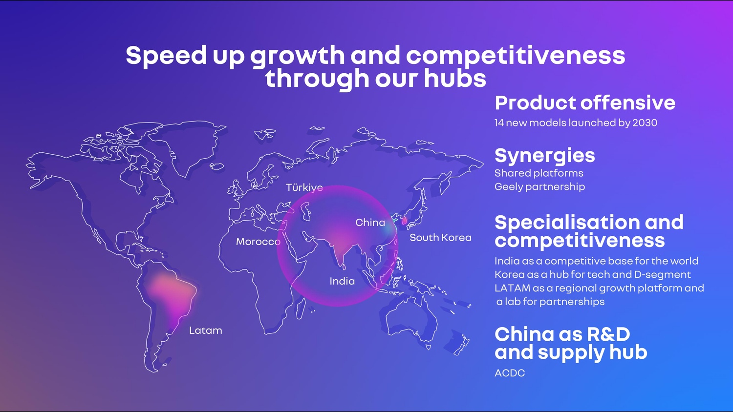 Într-un mediu din ce în ce mai volatil, Renault Group își propune să concureze cu producătorii auto chinezi în materie de inovație, costuri și viteză de execuție. Aceasta presupune un ritm accelerat de dezvoltare a produsului, cu un ciclu de doi ani! Toate proiectele noi ale Grupului sunt acum dezvoltate în acord cu acest obiectiv!
