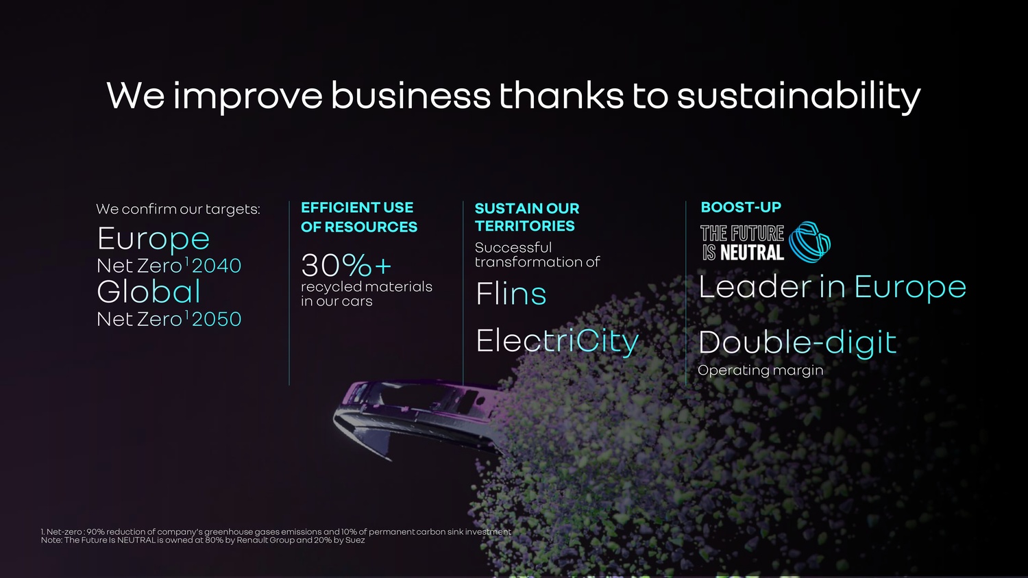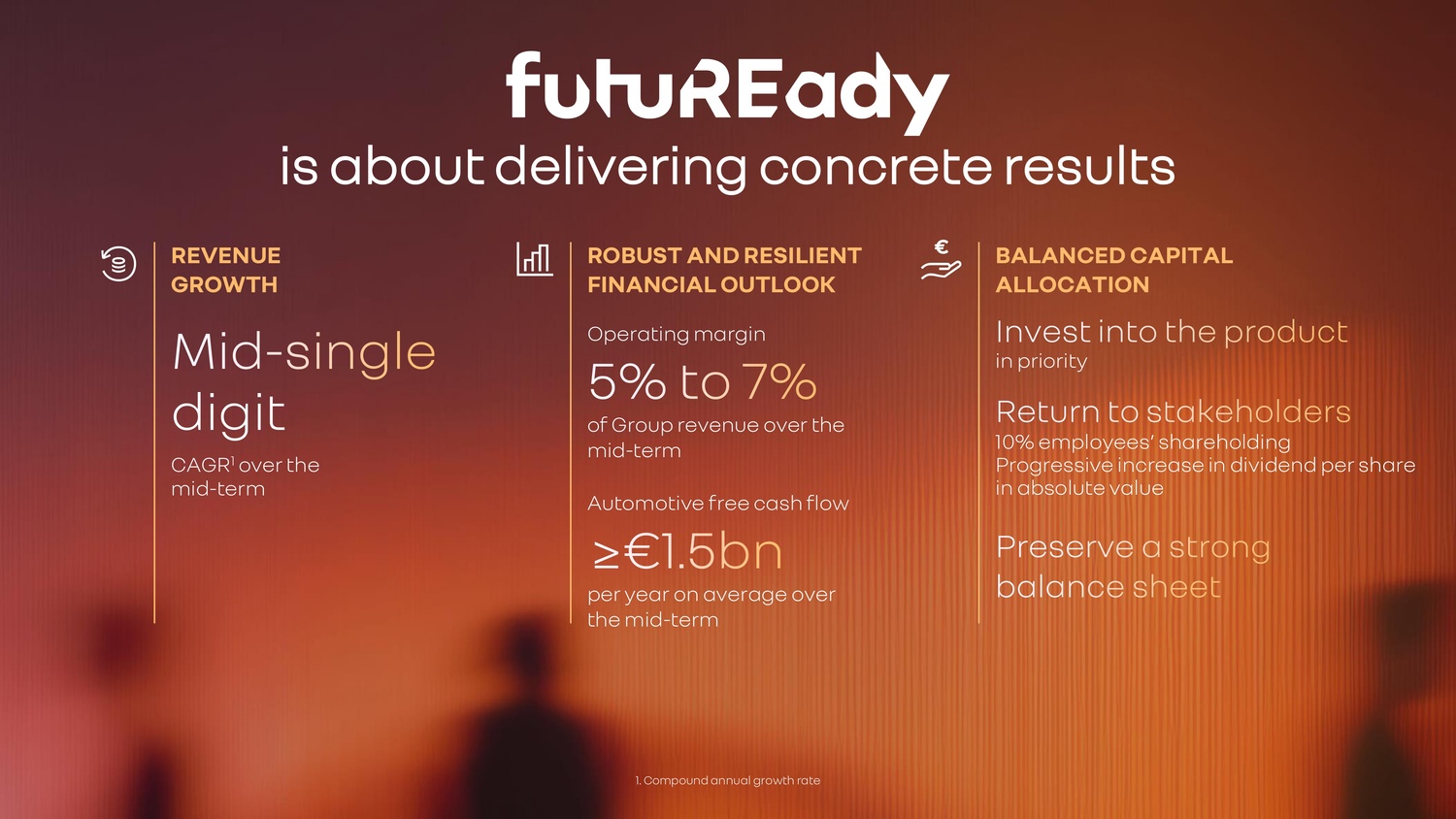 „futuREady, noul nostru plan strategic, marchează o etapă crucială pentru viitorul Renault Group. Într-un mediu mai competitiv ca niciodată, ne putem baza pe fundamente solide: mărcile noastre, produsele noastre și rezultatele noastre financiare.”