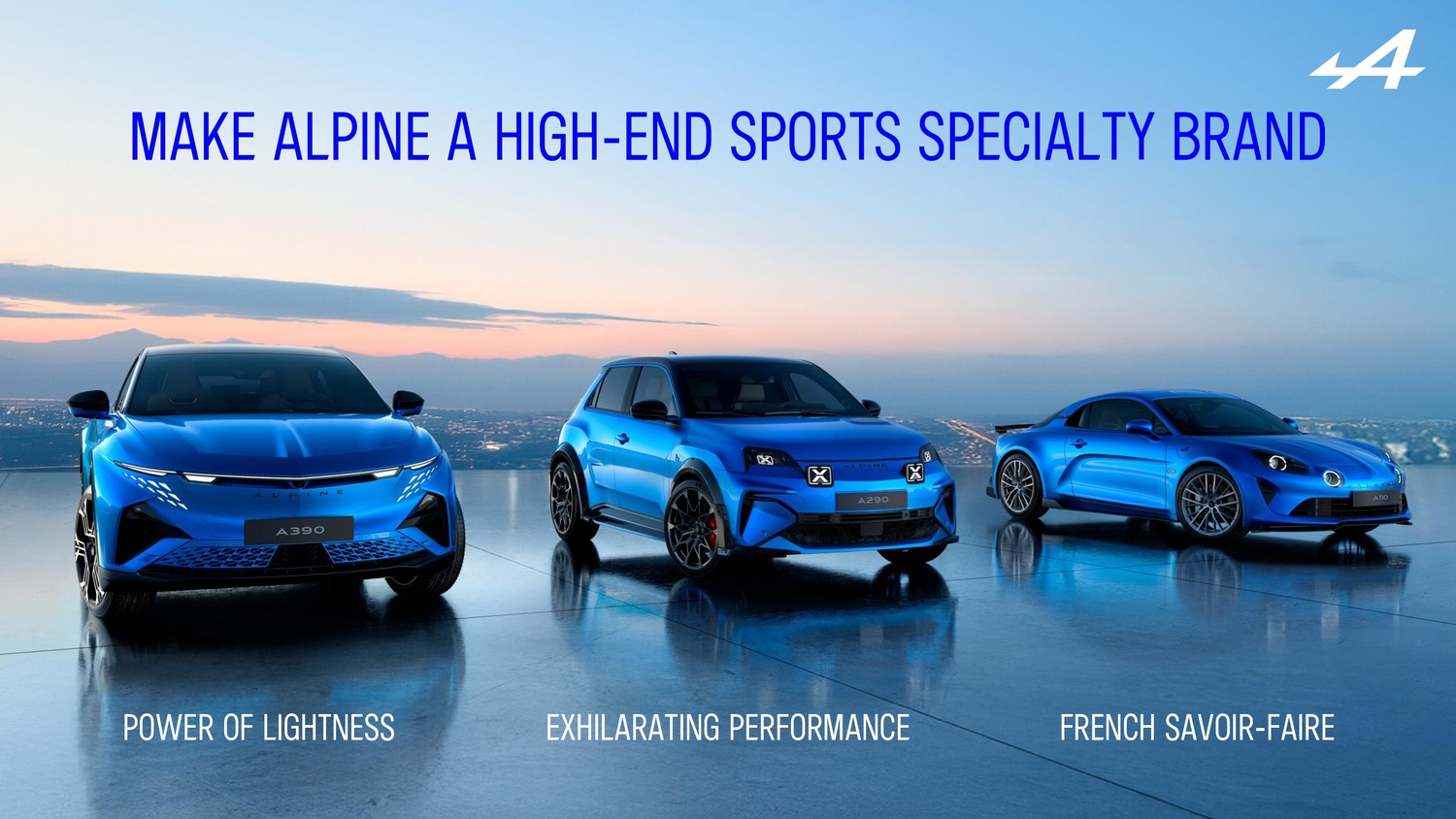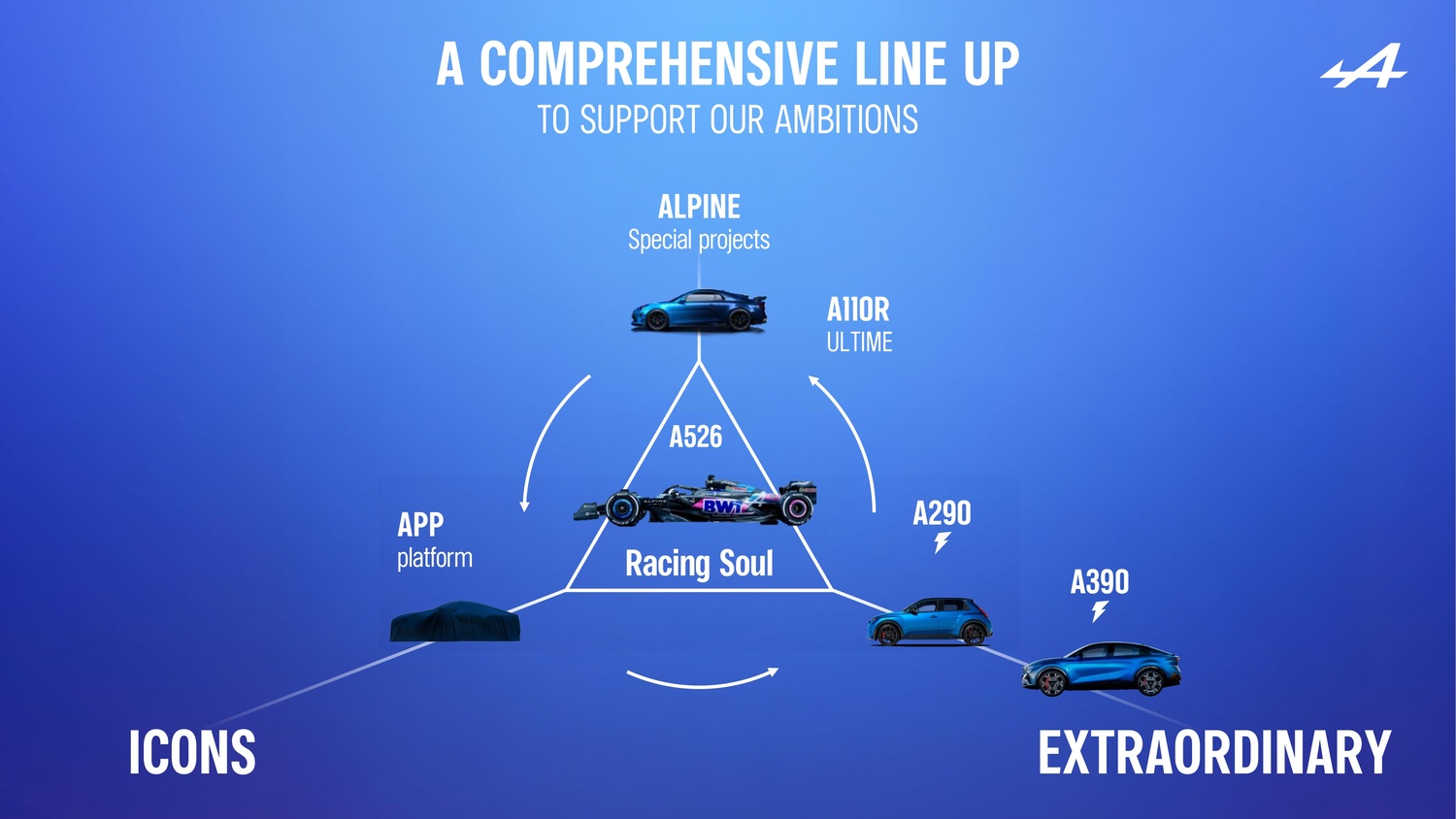 - Lansarea următoarei generații a modelului emblematic A110, bazat pe noua platformă Alpine Performance Platform (APP)