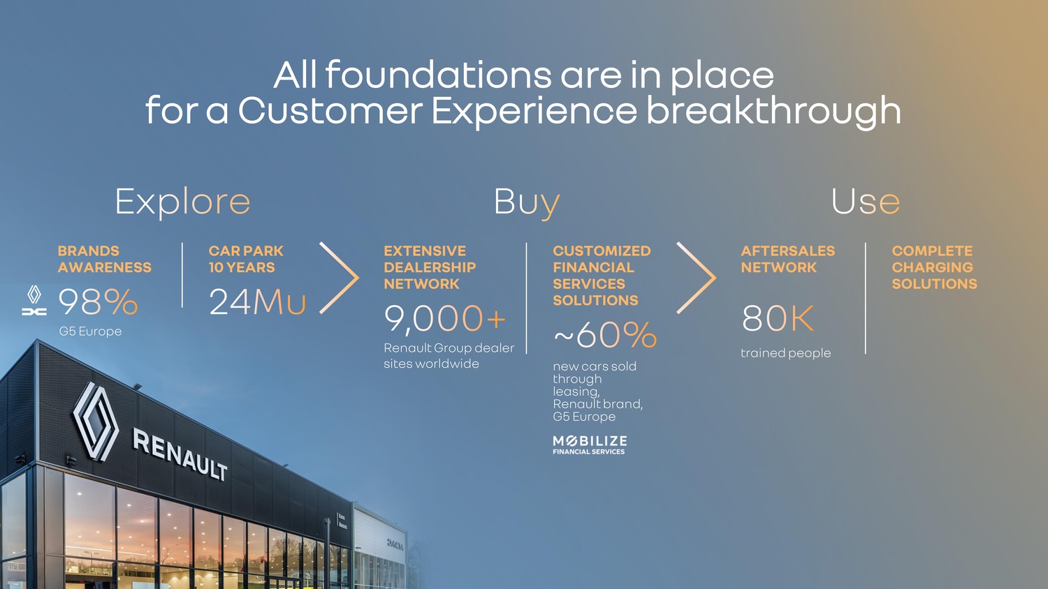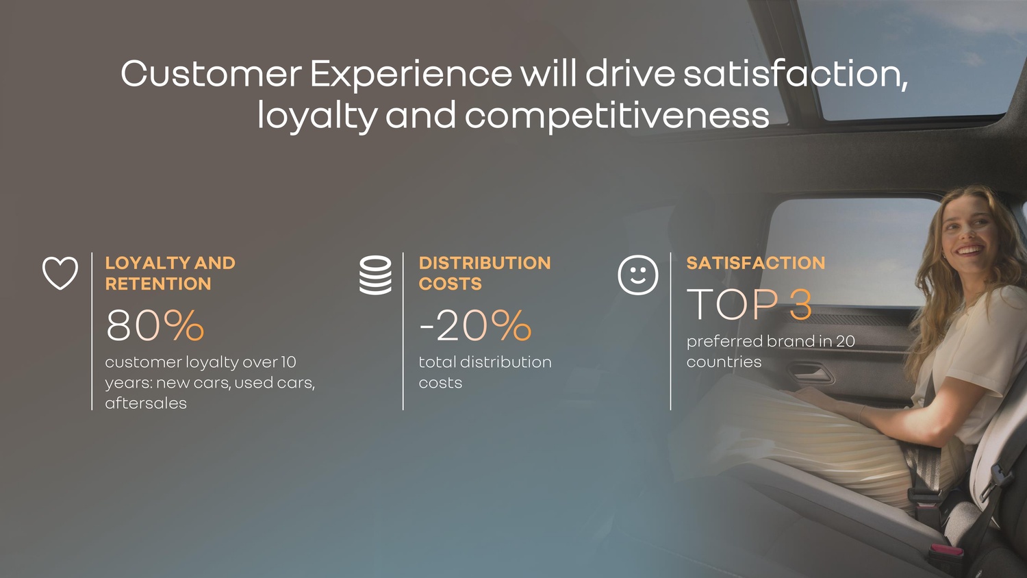 Experiența clientului va juca un rol cheie în strategia implementată de cele trei mărci, ca parte a ofensivei de produse și pe tot parcursul ciclului de viață al vehiculului. Aceasta va deveni un factor major de diferențiere și loialitate.