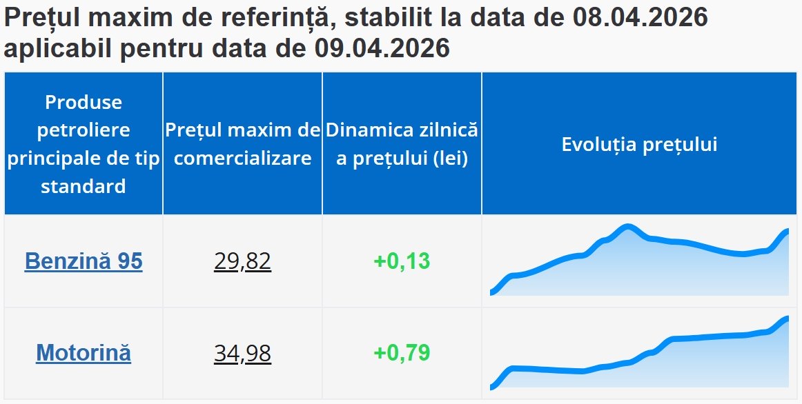 ANRE reamintește că, în condiții normale, metodologia de calcul a prețurilor de comercializare cu amănuntul pentru benzina și motorina standard are la bază media cotațiilor din ultimele 14 zile calendaristice (aproximativ 10 sesiuni de tranzacționare). Dar în contextul incertitudinilor globale privind disponibilitatea produselor petroliere, în special în cazul motorinei, acest mecanism a fost ajustat temporar prin Hotărârea Guvernului nr. 143 din 26.03.2026 privind aplicarea măsurilor în contextul stării de urgență, perioada de referință pentru motorina standard fiind redusă la 7 zile calendaristice, care, în perioada sărbătorilor pascale catolice, a însemnat trei cotații.