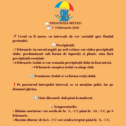 Vezi mai jos și prognoza meteo pentru zilele de 7-9 februarie:
