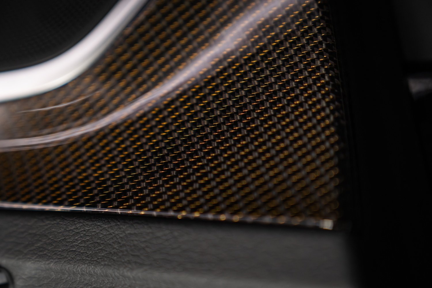 - Elemente din fibră de carbon vizibil lucios, inclusiv inserția din capotă și grila superioară