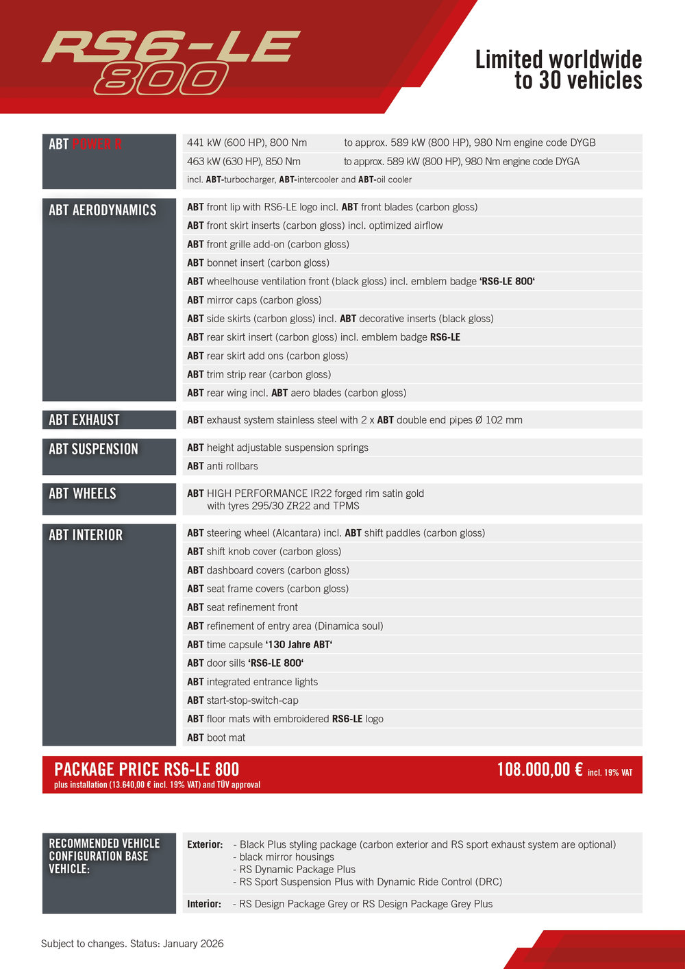 RS6-LE 800 duce această fundație la un nou nivel. Pachetul ABT POWER R oferă: