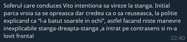 (update) Am primit un astfel de comentariu după publicarea articolului. Vinovat s-ar face șoferul din Vito.