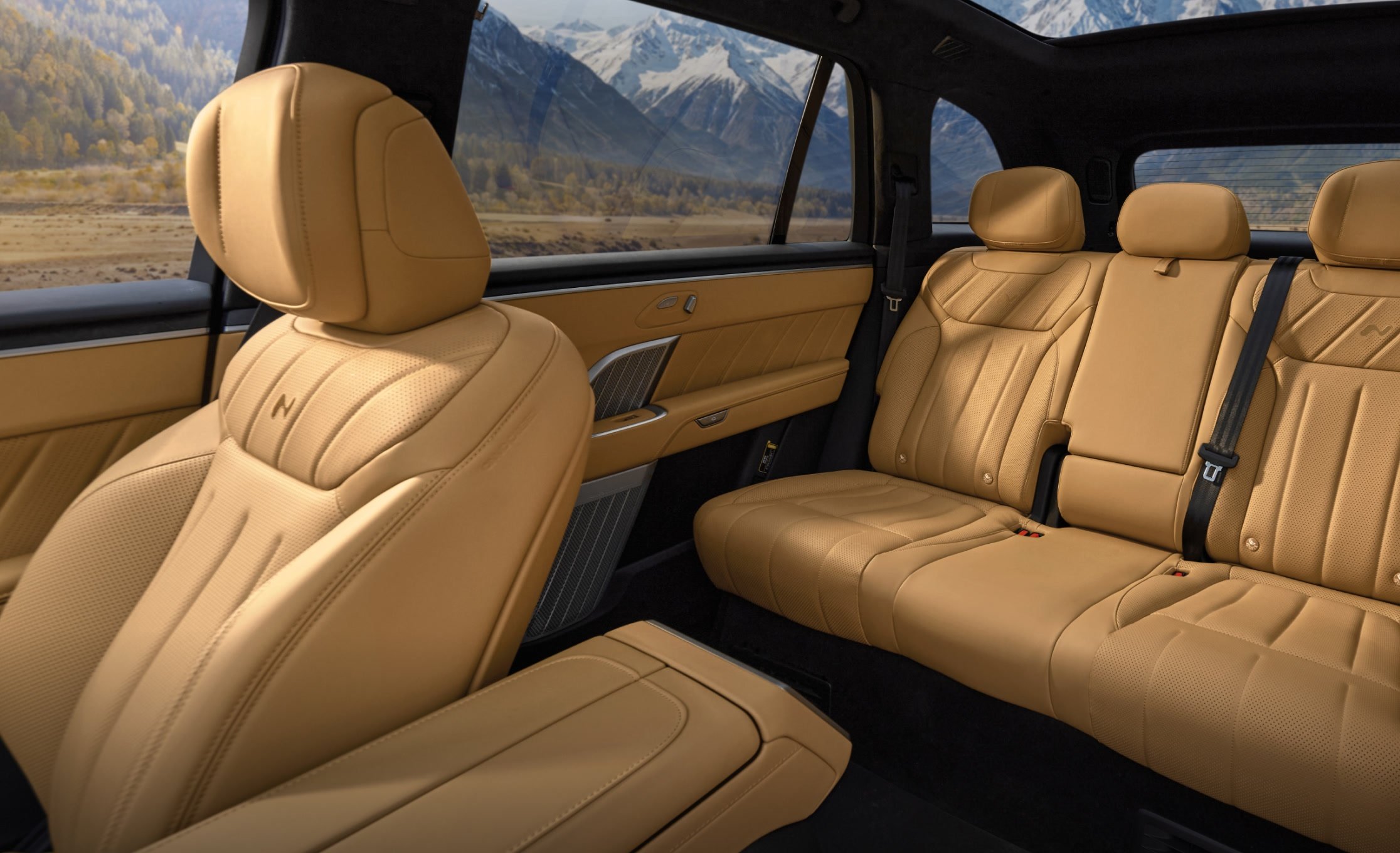 - Ecrane: patru (head-up display de 35 inchi cu AR, central de 17.2 inchi, în tavan de 17.3 inchi și unul de 8 inchi pentru controlul funcțiilor de către pasagerii din spate)