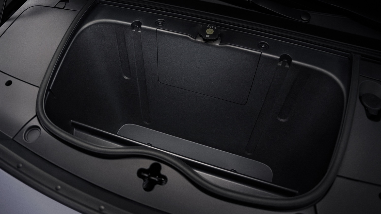 - Portbagaj frontal (frunk): 92 litri, cel mai mare din clasă, cu cârlige, compartimentare și dop de scurgere.