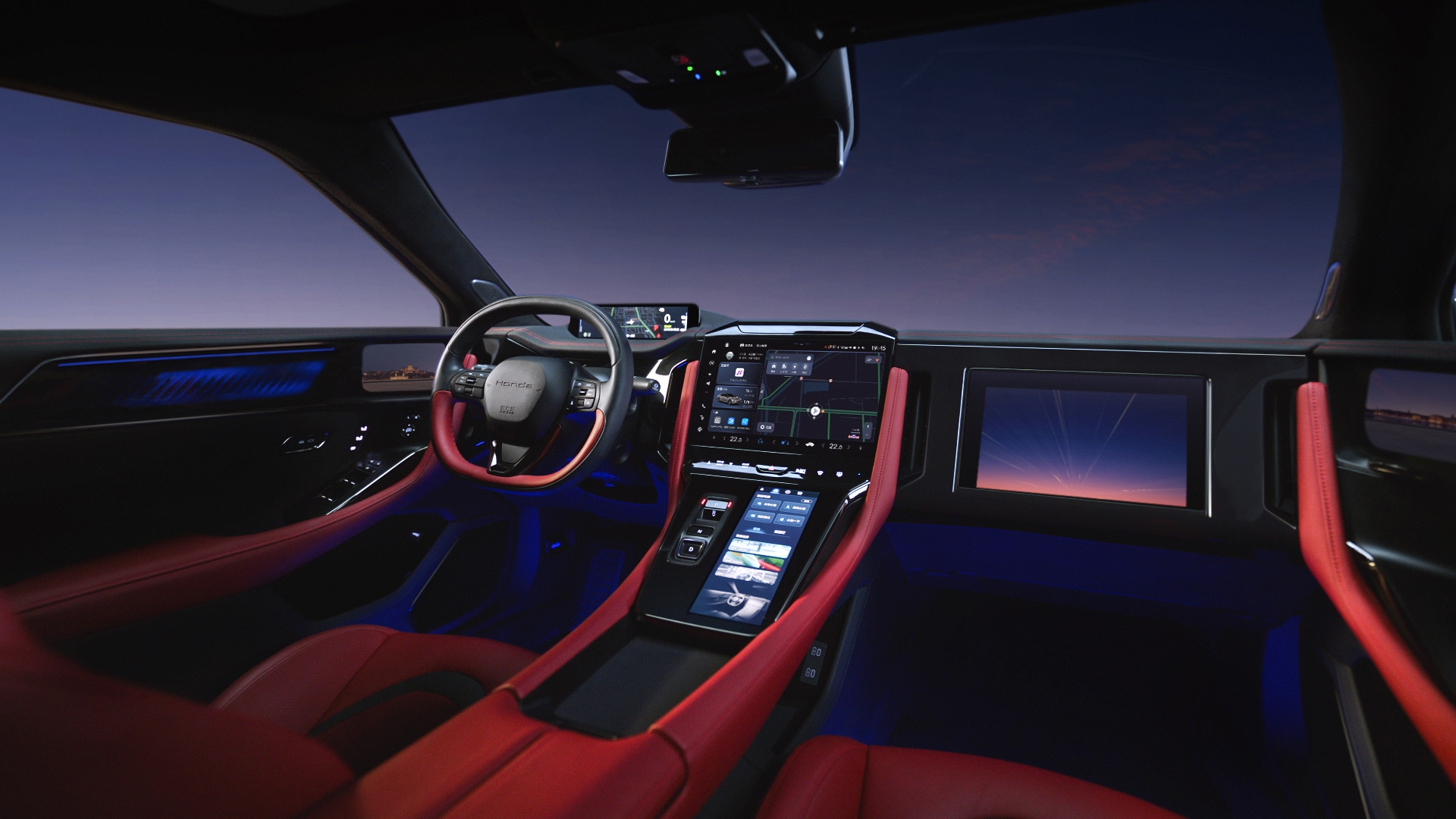 Cabina a fost concepută pentru a oferi o experiență duală: șoferul beneficiază de un cockpit asemănător mașinilor de curse, cu accent pe plăcerea condusului, în timp ce pasagerul din dreapta are parte de un spațiu relaxant, cu un ecran de tip „far-focus” care creează o experiență cinematică.