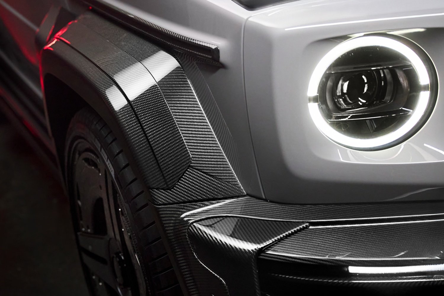 - Grilă de radiator iluminată, din carbon expus cu emblemă BRABUS luminată