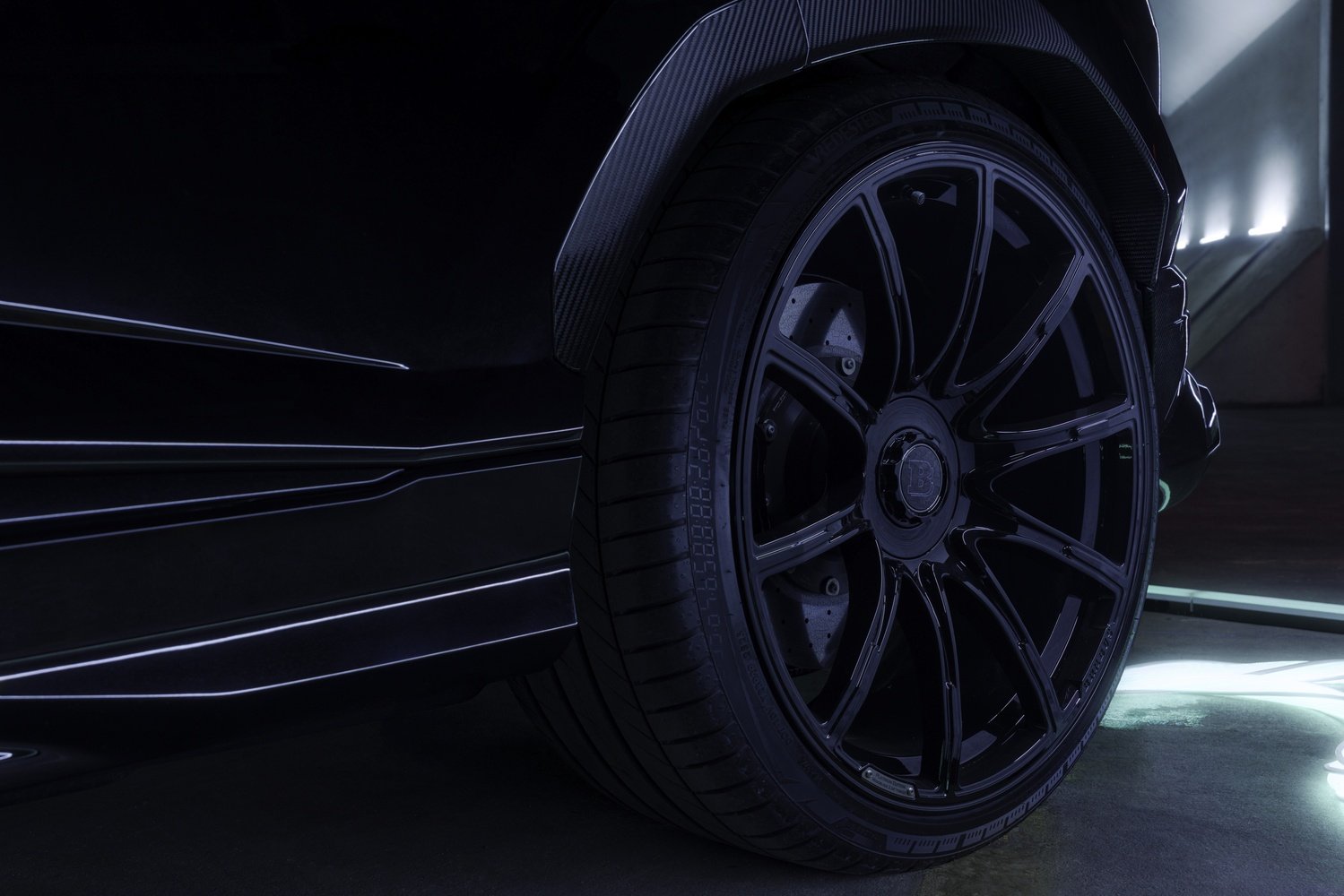 - Bară față BRABUS cu prize mari de aer și downforce suplimentar pe puntea frontală
