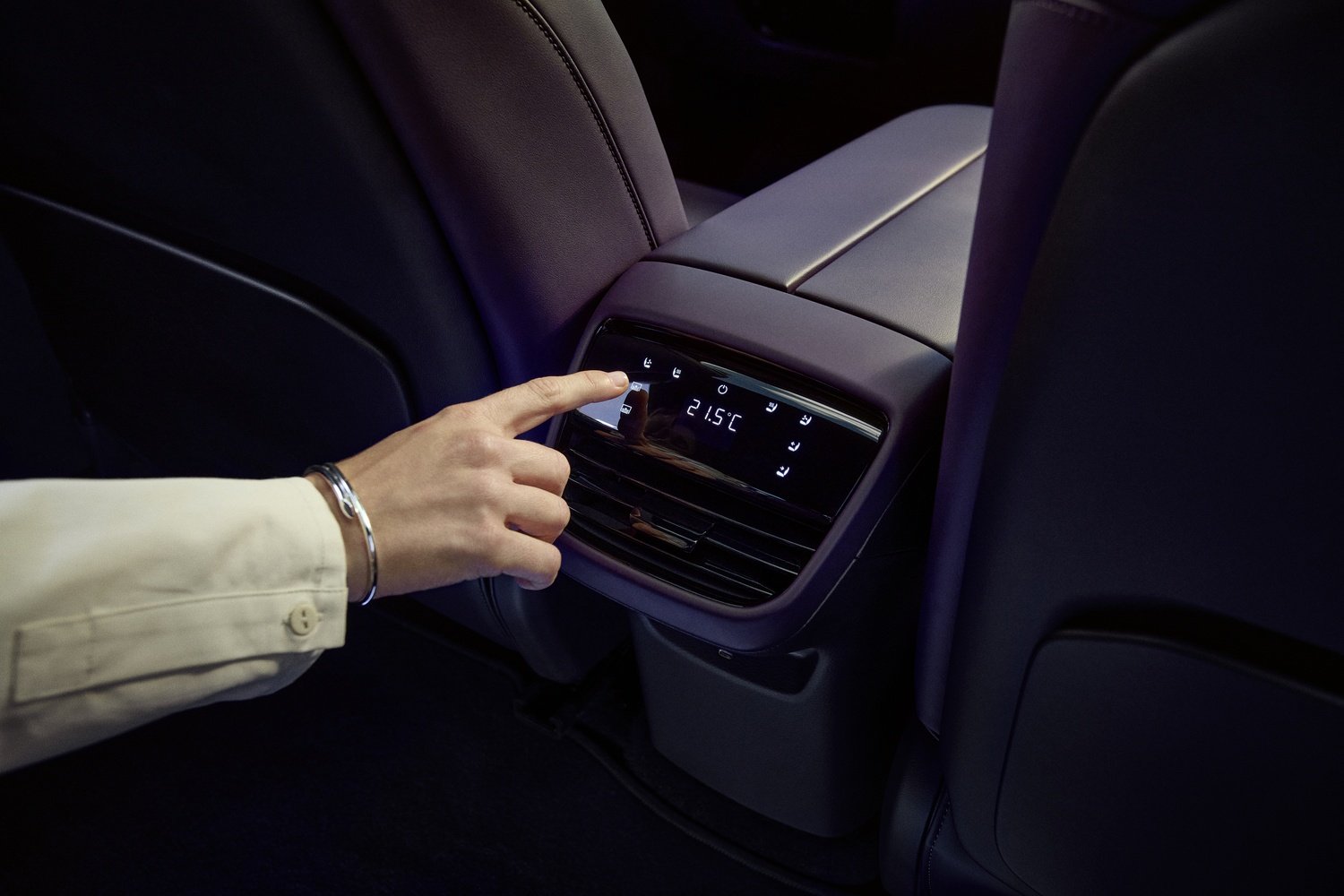 • Materiale premium: Maztex (alternativă vegană la piele), accente argintii semi mate și finisaj lucios pe consola centrală.