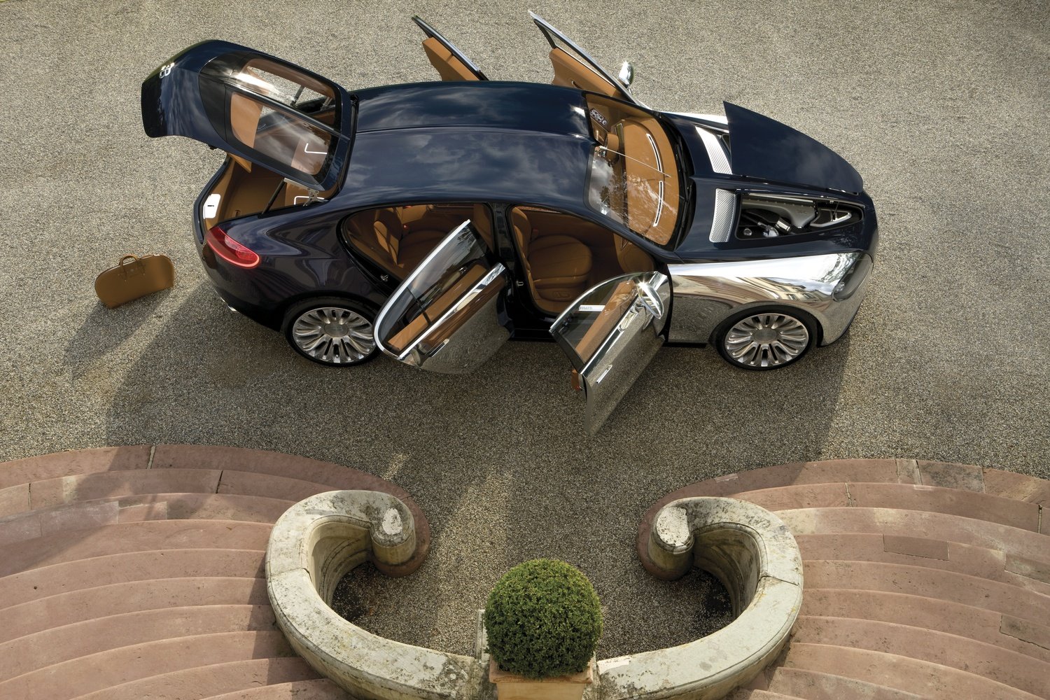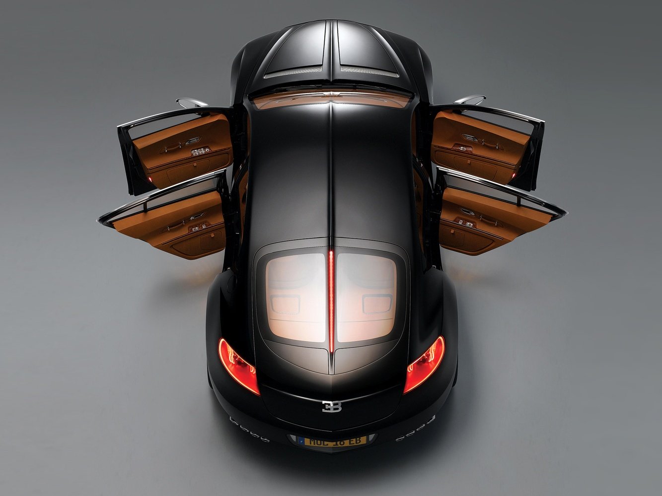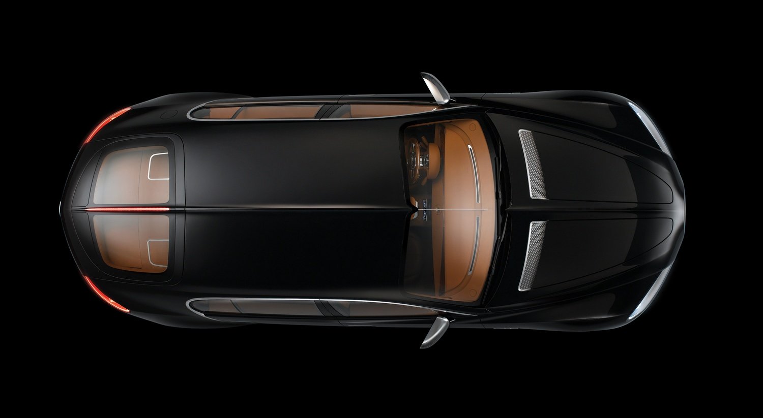 La Salonul Auto de la Frankfurt a fost prezentat în două culori: o combinație de fibră de carbon albastră cu aripi și portiere din aluminiu lustruit. Jantele de 22 inchi cu capace centrale iluminate cu nivelare automată și anvelope conceptuale cu bandă de rulare unică completează look-ul futurist. Dar cel mai spectaculos detaliu: capota care se deschide în două părți simetrice de-a lungul axei centrale – un omagiu adus Type 57SC Atlantic și o soluție tehnică rară.