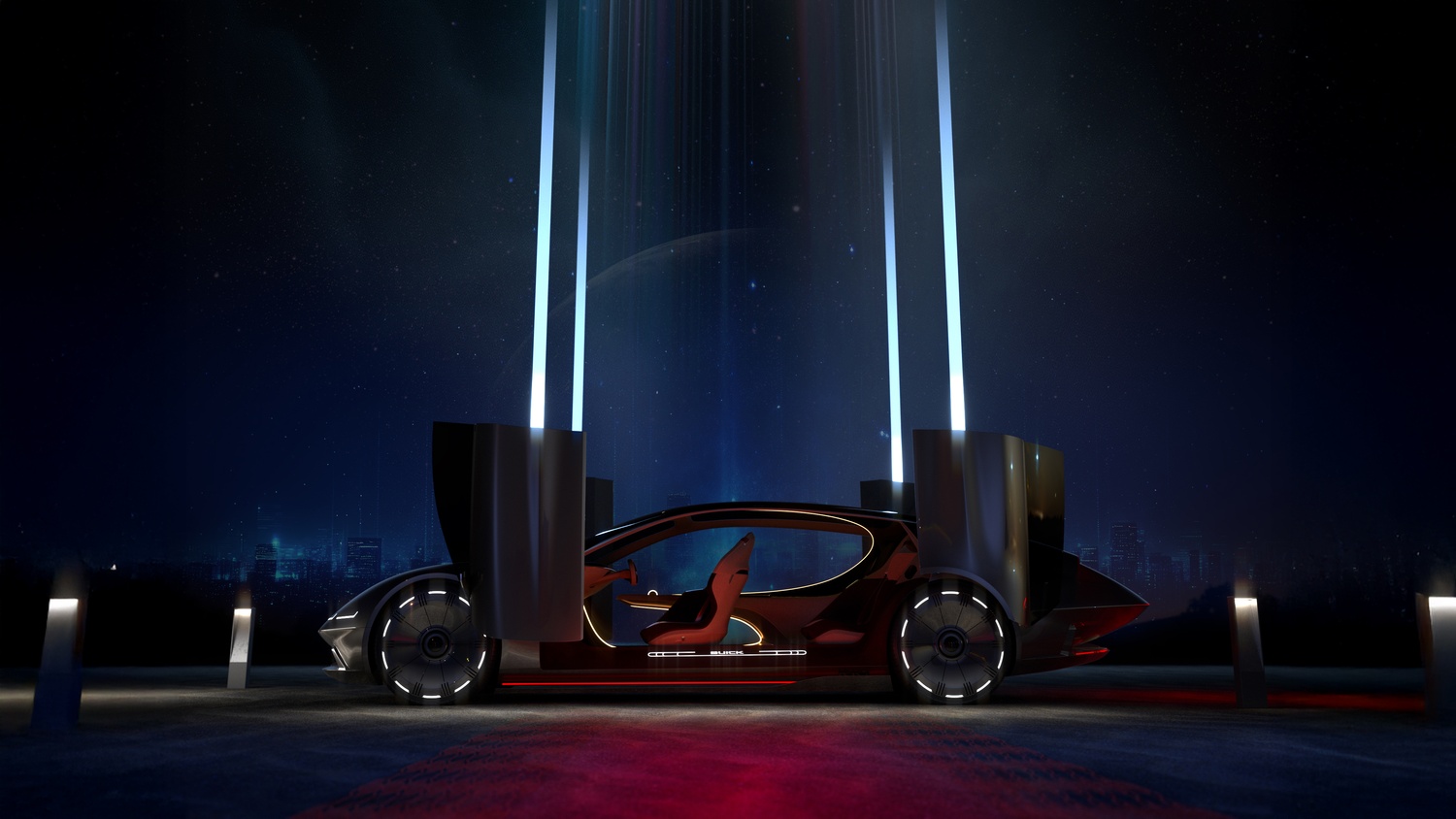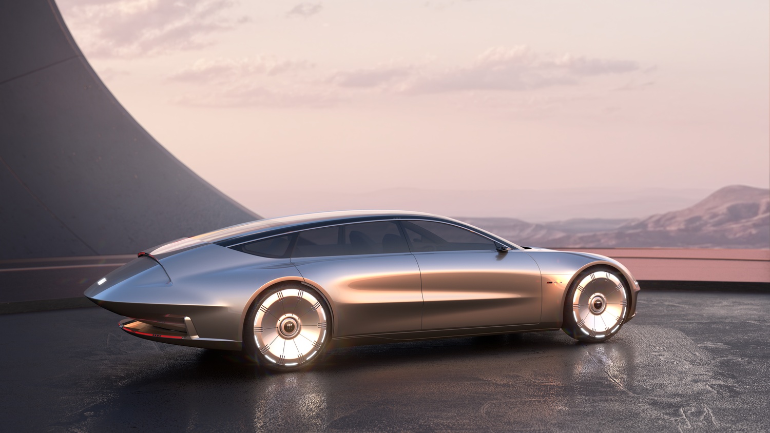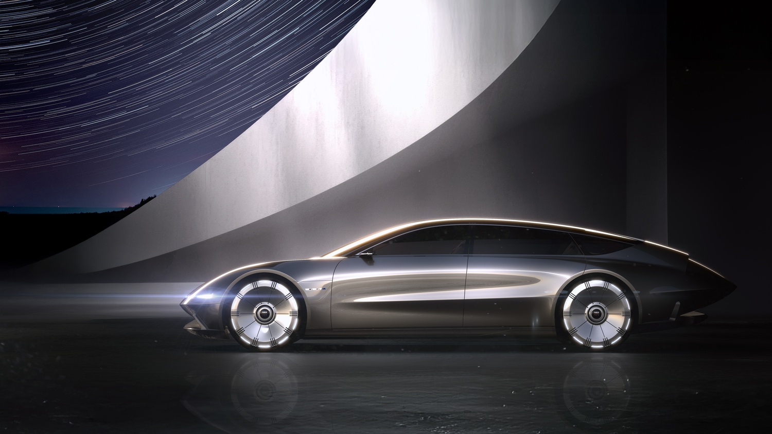 Portierele care se deschid lateral și vertical oferă o experiență ceremonială pentru pasageri, în timp ce componentele aerodinamice retractabile, activate la viteze mari, optimizează rezistența și forța de apăsare. Jantele de 24 de inchi, integrate subtil în aripile proeminente, împreună cu liniile fluide ale caroseriei, subliniază o estetică premium fără egal. La nivelul capotei, două compartimente pentru bagaje oferă spațiu de stocare personalizabil, un omagiu adus romantismului călătoriilor.