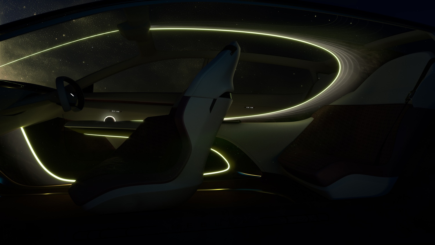 Un ecran „Star Ring” traversează montanții A, oferind o experiență digitală captivantă. Instrumentele de bord și volanul se ajustează inteligent în funcție de modul de conducere – concentrat sau confortabil cu autopilot – asigurând o tranziție seamless. Interfața „Wormhole”, inspirată de găurile negre, acționează ca un asistent AI, în timp ce un controller sferic de pe consola centrală permite o operare intuitivă a funcțiilor vehiculului.