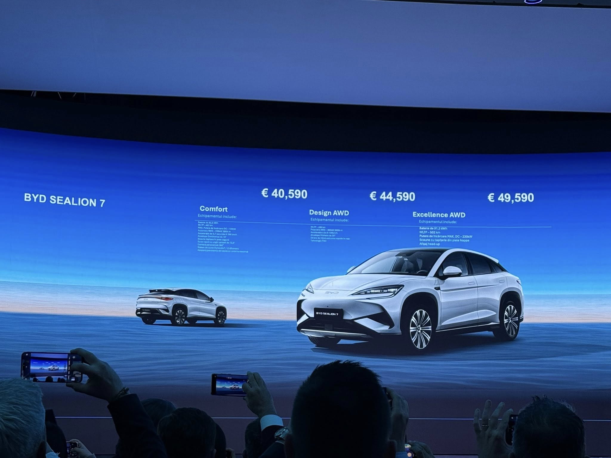 - SUV-ul electric BYD Sealion 7 (313 CP cu tracțiune spate, 530 CP cu AWD, baterii de 82.5 și 91.3 kWh, autonomii 456-502 km WLTP).