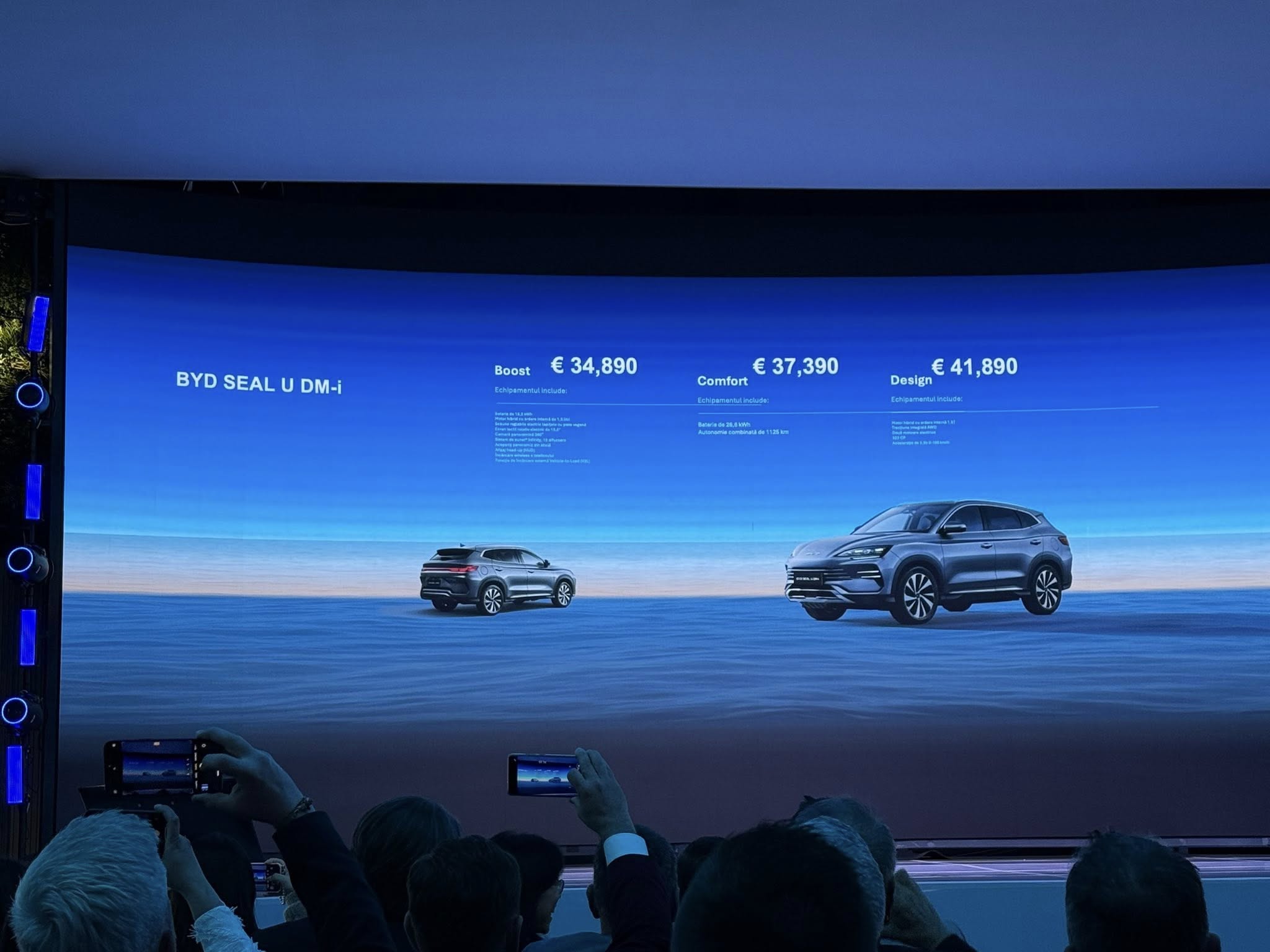 - SUV-ul hibrid BYD Seal U DM-i (hibrid paralel, benzinar de 1.5 litri + electromotor, 218 cu tracțiune față sau 324 CP cu AWD asigurat de al doilea electromotor, o singură baterie de 18.3 kWh, autonomia mixtă electrică – până la 80 km, autonomia totală combinată – până la 1080 km).