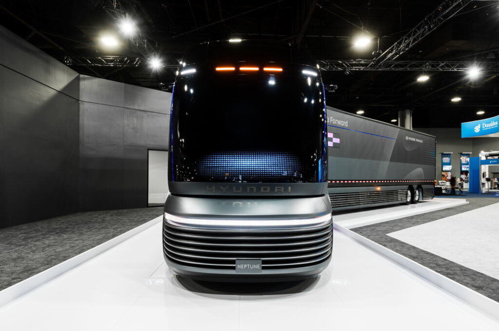 Hyundai HDC-6 NEPTUNE este un semi-trailer din Clasa 8 (acei monștri americani dubli ca dimensiuni față de TIR-urile din UE) cu un design reminiscent cu cel al vagoanelor de tren Art Deco de la mijlocul secolului XX. Totuși, tehnologia de la bord aparține secolului nostru, dovadă fiind imensa grilă din partea de jos, necesară pentru răcirea sistemului fuel cell.